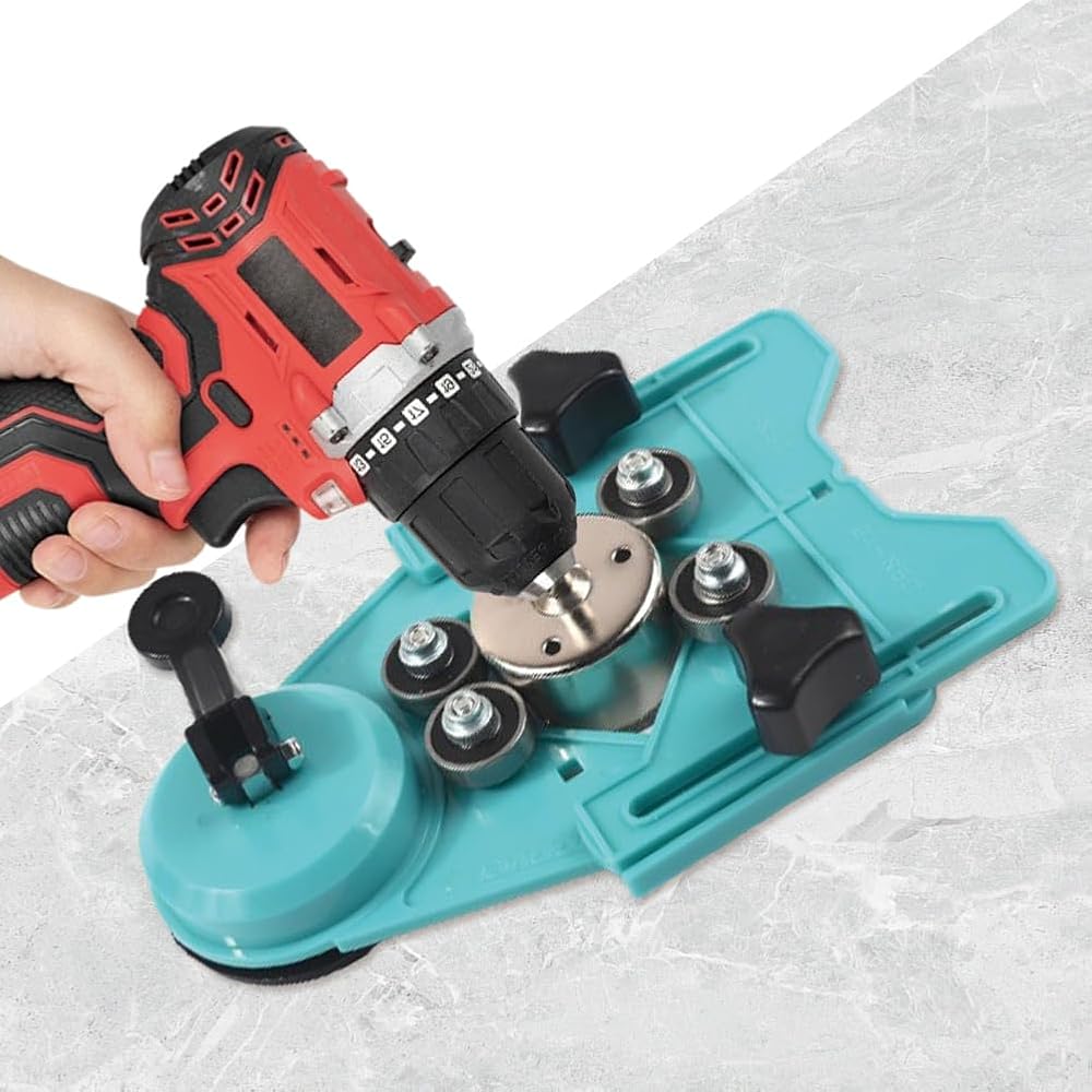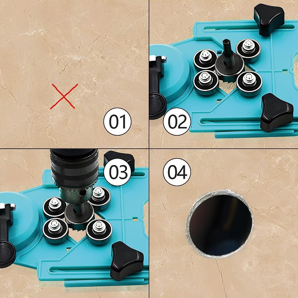 Enhanced Drilling Efficiency: Elevate your drilling efficiency with the tile hole saw set for marble's smart design features; The incorporation of strategically placed water cooling holes keeps your equipment cool during operation. This cooling mechanism is especially crucial. This drill bit hole saw guide jig blue hole drill guide locator offers more precise drilling, adjustable punch locator hole saw guide jig fixture can be used for multiple times