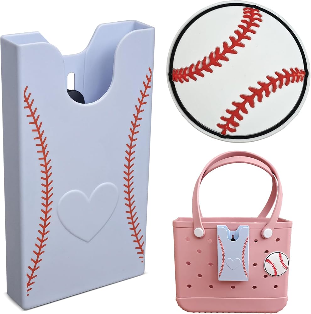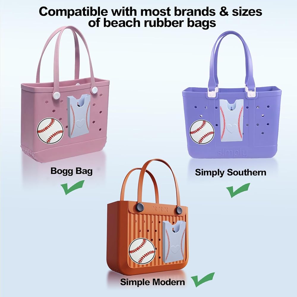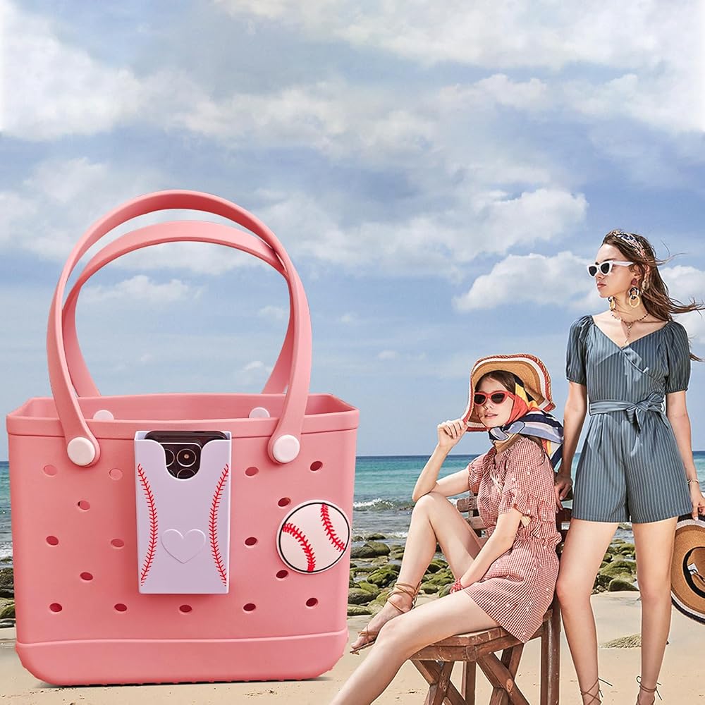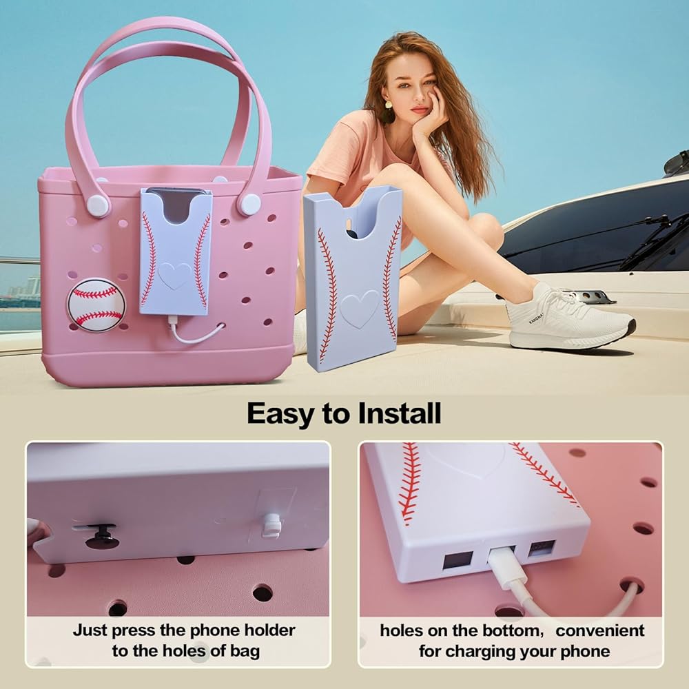 Baseball Theme Phone Holder for Bogg Bag/Simply Southern With 1 Charm,Organizer Accessories Inserts Compatible With Most Brands/Sizes Rubber Beach Totes,Cell Phone Attachment for Beach Handbags