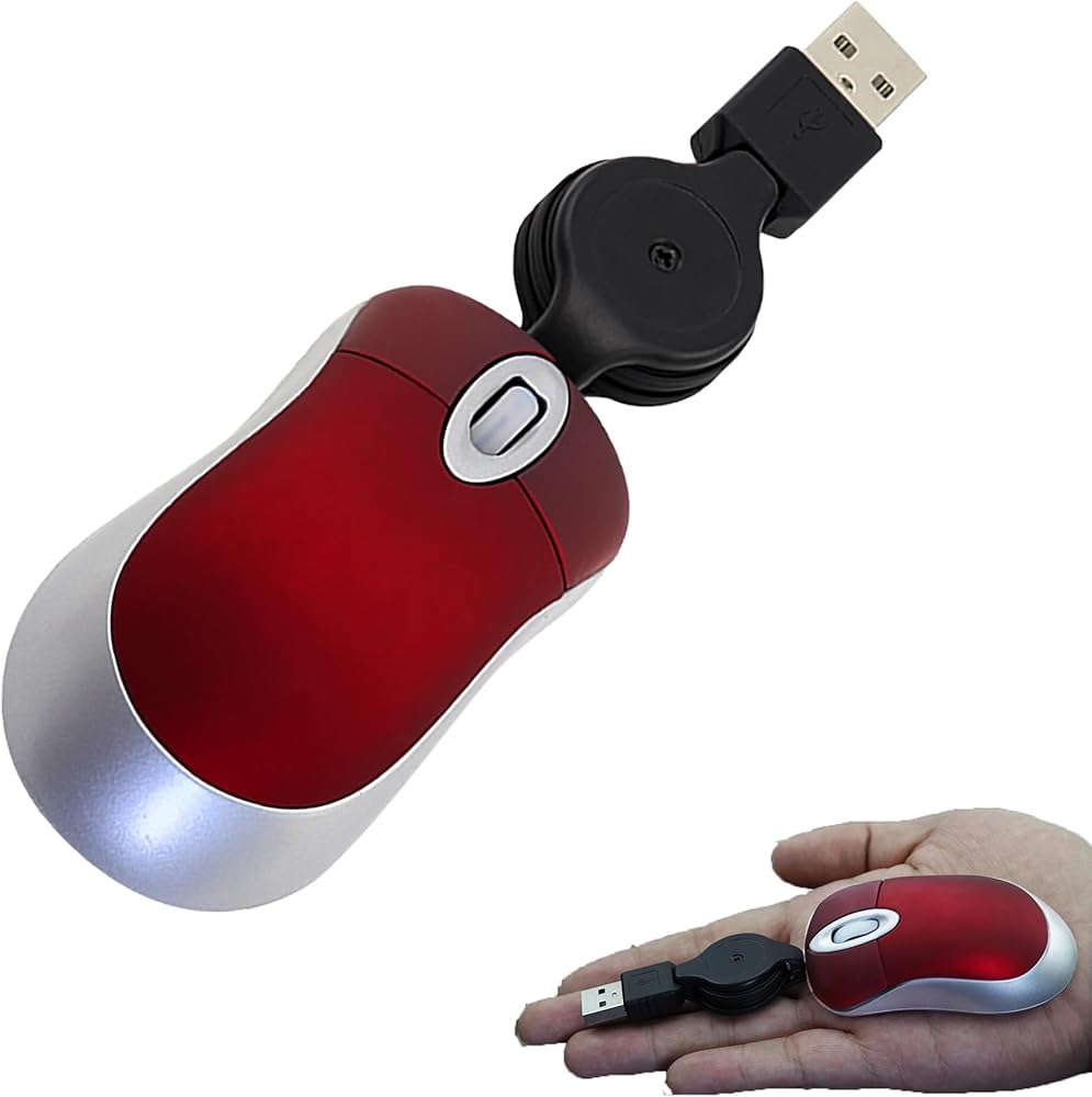 The Mini Retractable Mouse is a 1600 DPI optical USB cable mouse designed for small children with comfort and precision without having to deal with the delayed connection between the mouse and the computer