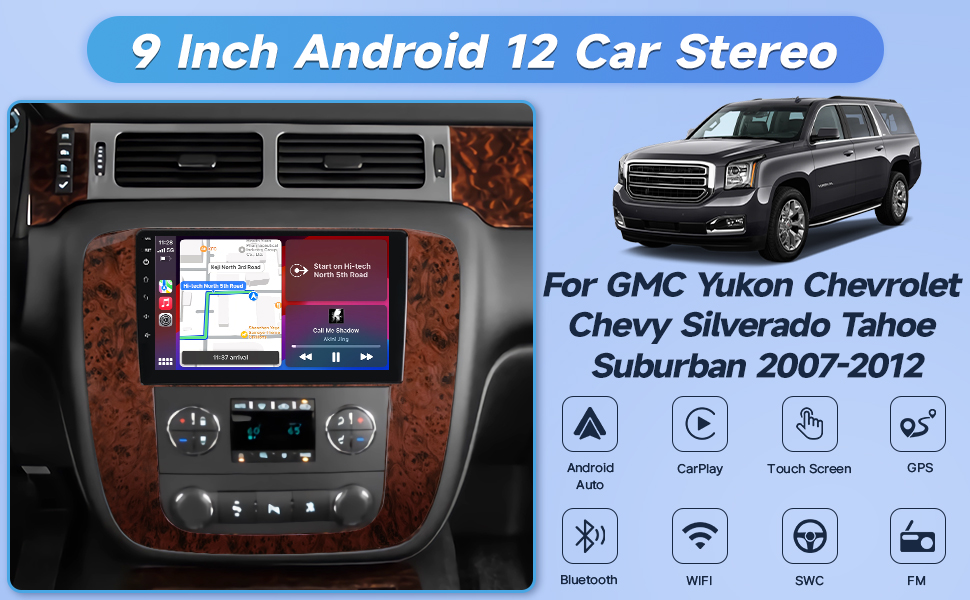 🚘【Applicable Models】:Car stereo for For Chevy Silverado 2007-2012 & For Chevy Tahoe 2007-2012 & For Chevy Suburban 2007-2012 & For GMC Yukon 2007-2012; If you are not sure, for details, see Product Description.