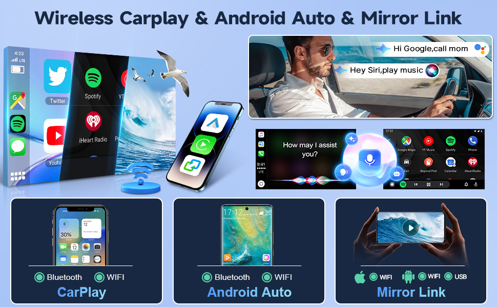 🚘【Support Wireless Carplay & Android Auto】: For 2007 2008 2009 2010 2012 Chevy Tahoe radio is compatible with wireless Apple CarPlay and Android Auto. You can connect to this dual channel car audio system via Bluetooth & WIFI and access most of the functions on your phone, such as music, video, GPS navigation, information, etc. For 2012 Chevy Tahoe carplay has voice control function. When you need it, just say 'Hey Siri/Google' to wake it up, very simple and convenient.