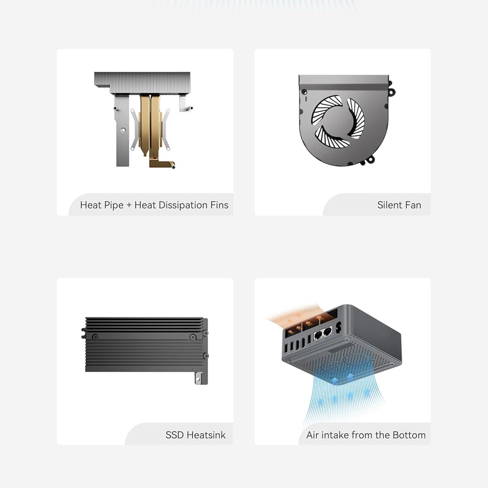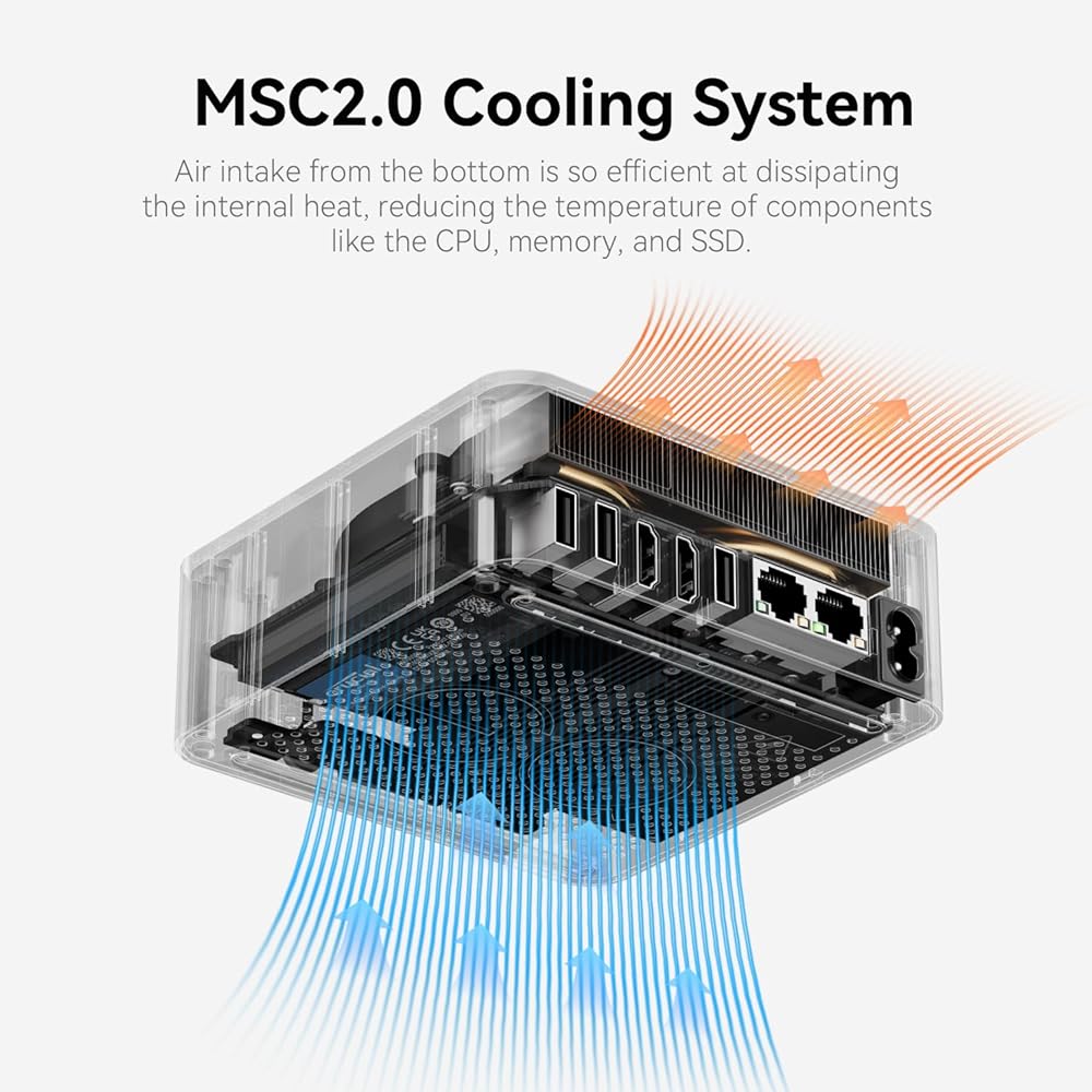 💡【Compact & Rich Interface & Built in Power supply unit】Easy to setup and small in size. WiFi 6 (802.11ax) , Bluetooth 5.2 is faster and more stable. Gigabit Ethernet RJ45 1000M network connectivity. Beelink EQR6 is equipped with 2x HDMI, 3x USB3.2, 1x USB2.0, 1x Type-c(data), 2 xGigabit Ethernet lan, 3.5mm Audio Jack. MSC2.0 design help this mini pc works better and efficient heat dissipation.