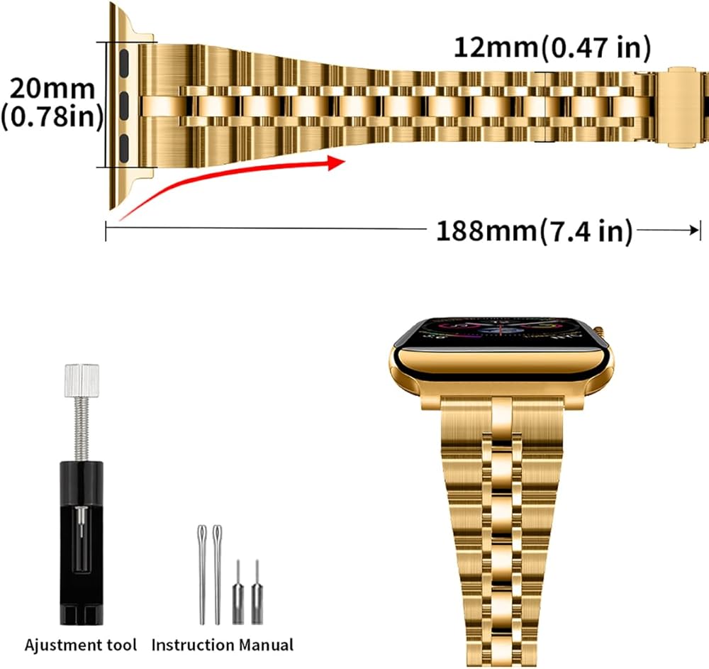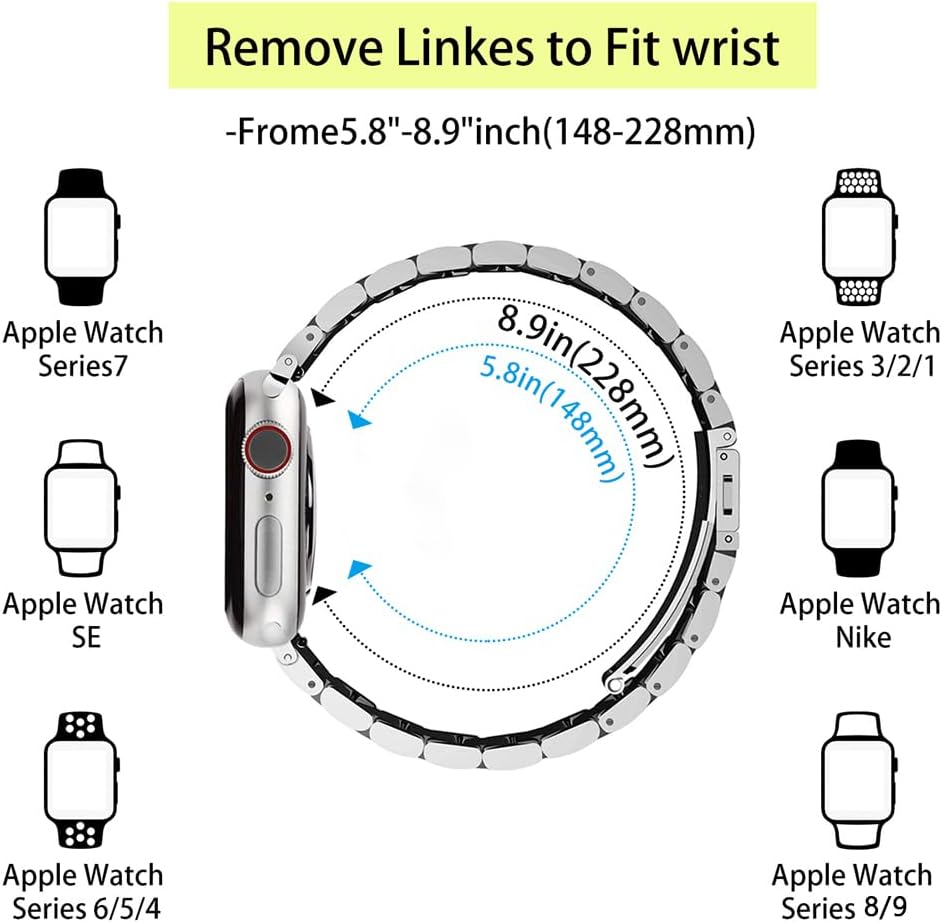 【Easy adjustment】: This Iwatch watch comes with 8 removable links, so you can easily adjust the length of the Apple watch bands with the included removal tool to fit your small wrist perfectly.
