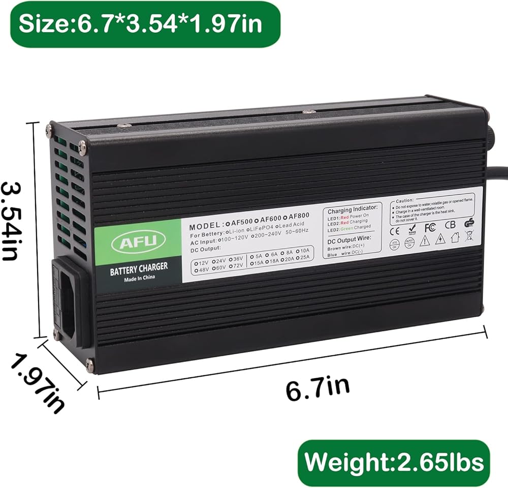 🛵AC Input: 100~120Vac, 50~60Hz ; DC Output: 54.6 Volt / 6 Amp, Provide 1* US standard power cable and 2* Fuse Can be Changed By Yourself