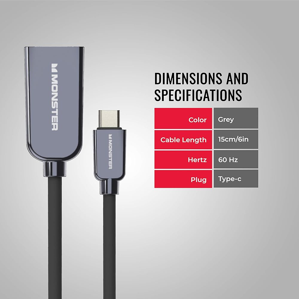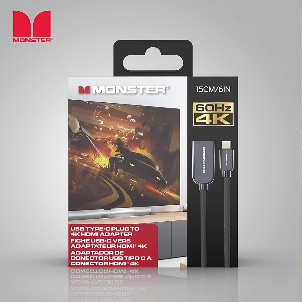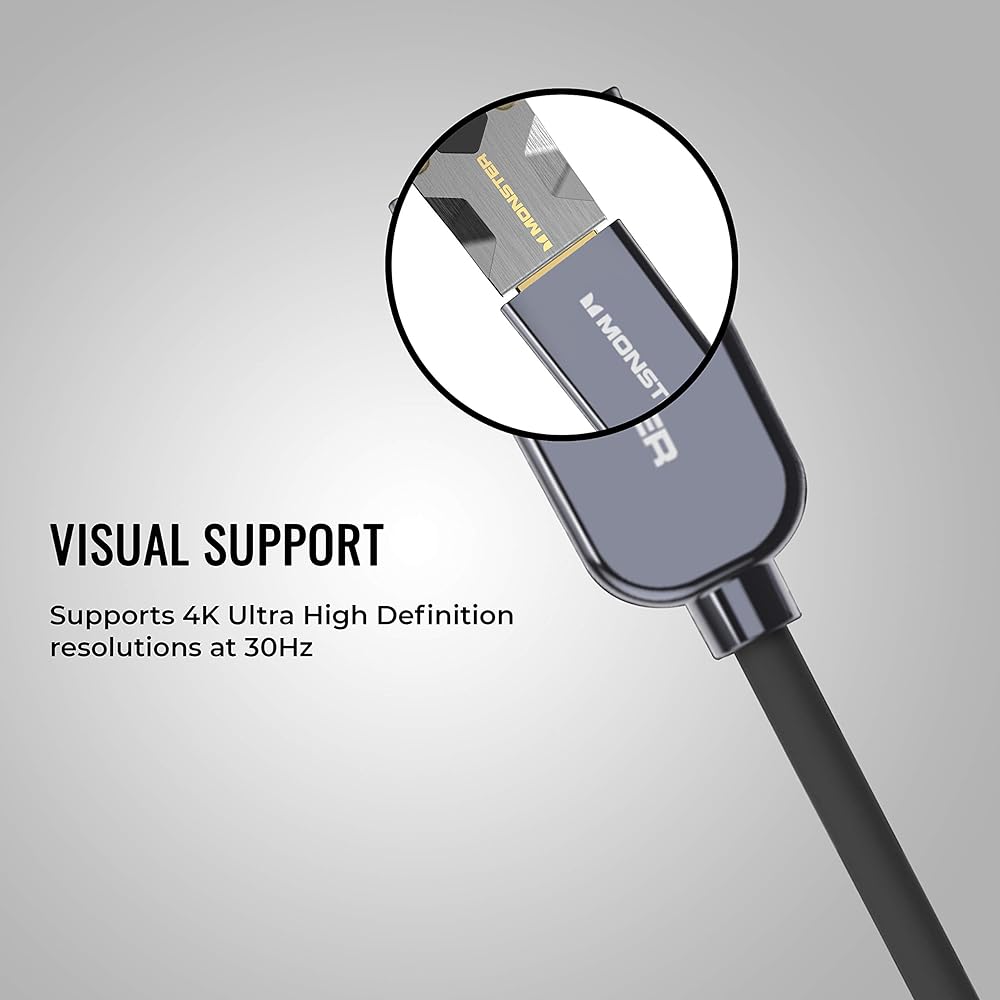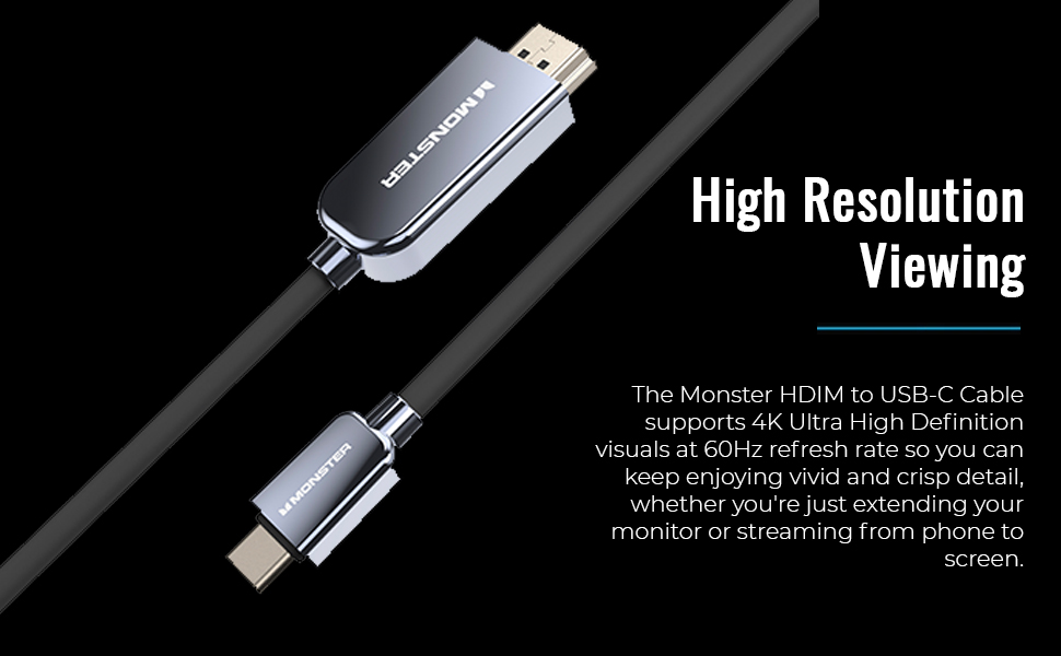 TOP NOTCH VISUAL SUPPORT: There's no need to worry about reduction in picture quality when you use the Monster HDMI cable or adapter to USB Type-C when you're streaming or editing files because it supports 4K Ultra High Definition resolutions at 30Hz refresh rate