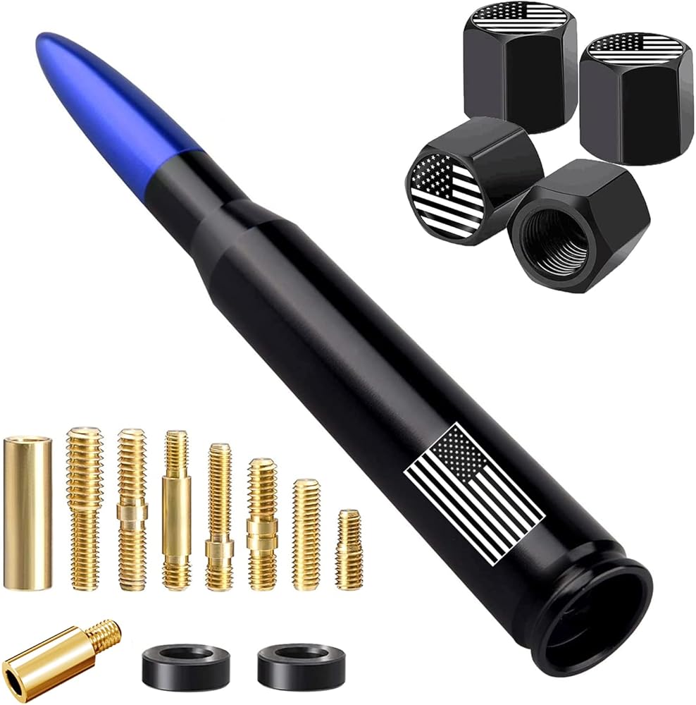 American Flag Car Truck Antenna with Valve Stem Caps, Universal Antenna Mast for GM Chevy Silverado 1500 2500 3500 HD Avalanche Ford F150 F250 F350 Denali Heavy Duty Pickup Trucks Accessories (Blue)