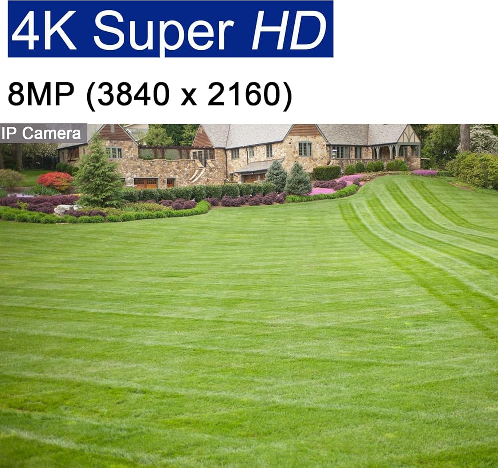 【8MP FHD, Pan & Tilt Allowing 355 Degree Monitoring】 This 4K FHD home security camera with 6 white lights & 6 infrared lights, provides you crystal color and B/W images & videos and excellent view at night. 355° horizontal and 90° vertical rotation plus 4x digital zoom (optical zoom is not supported), allows you to move the camera left/right up/down to get the picture wherever you want.