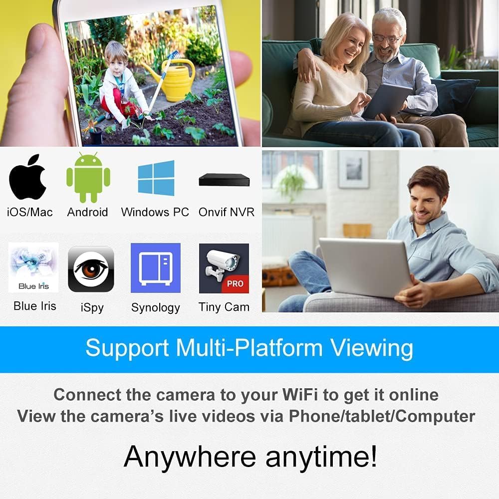 【Smart Detection, APP & Email Alerts Pushing】 This smart security camera supports advanced human shape detection, which helps you protect those you cared all day long. When motion is detected, notification will be pushed to your phone and/or email immediately. So you can check what happened immediately to secure your house and business.