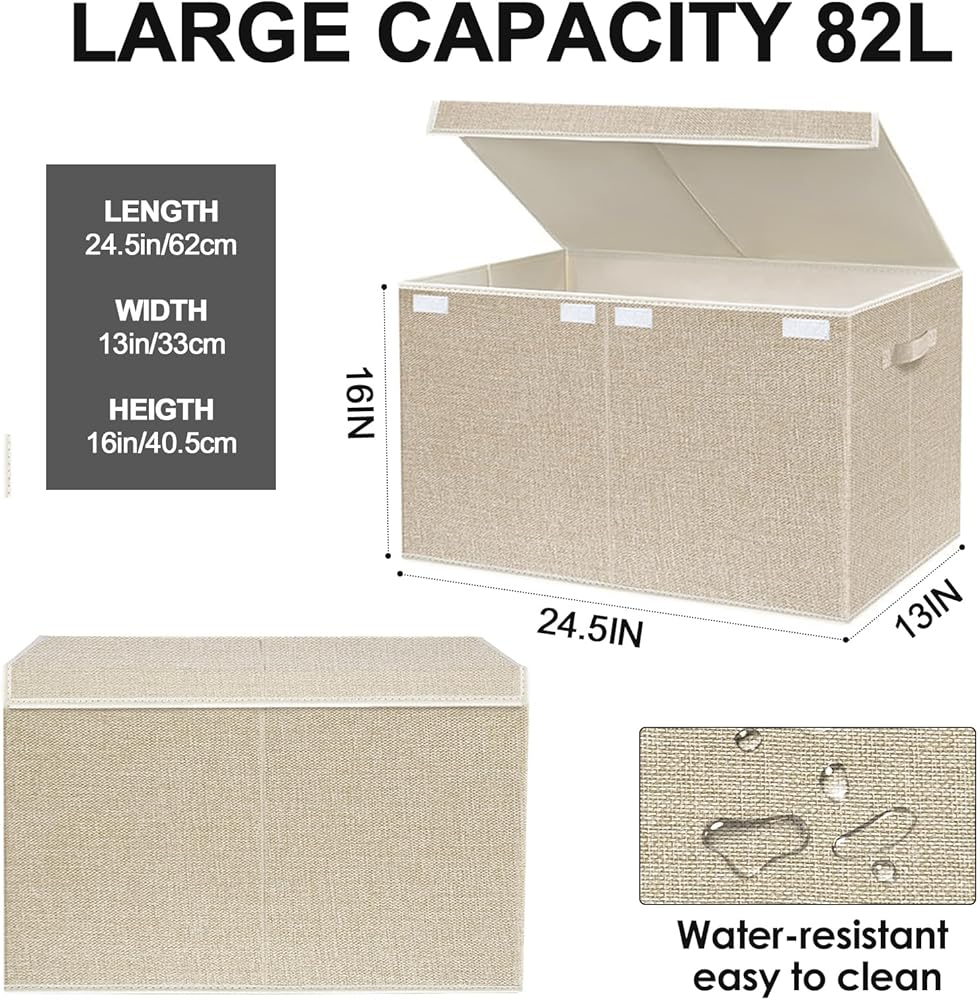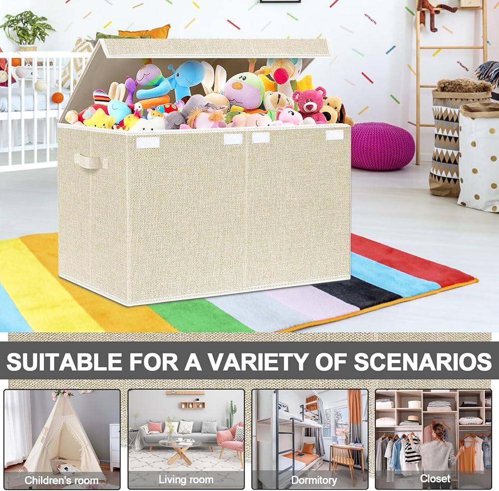 VERONLY Large Toy Box Chest Storage with Lid - Collapsible Kids Toys Boxes Organizer Bins Baskets with Handles for Boys, Girls, Nursery, Playroom, Clothes, Blanket, Bedroom(Beige)