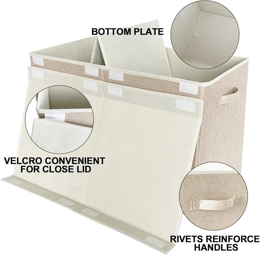 🍬【Foldable and Detachable】Removable flip top lid keeps contents out of sight when closed and detaches with Velcro tab to be used as open top toy storage organizer, when not in use, folds flat for easy storage under bed or on shelf,easy store or carrying.