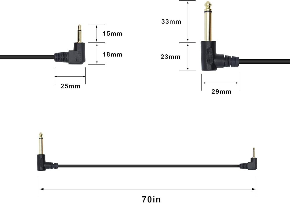 1 x Right angle 3.5mm TS to 6.35mm TS cable