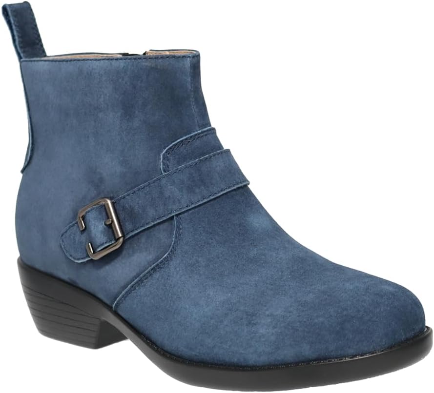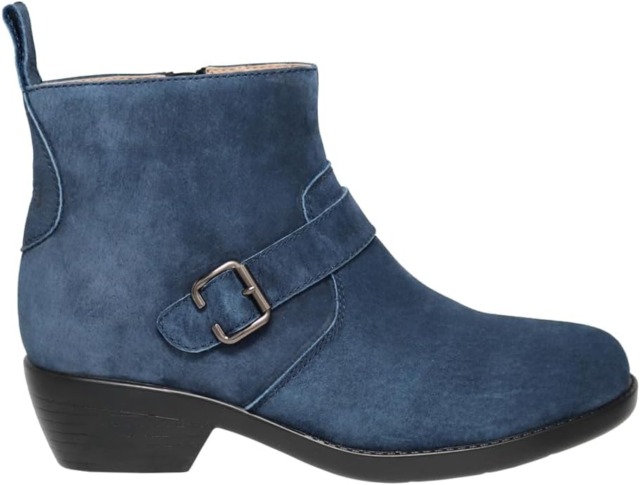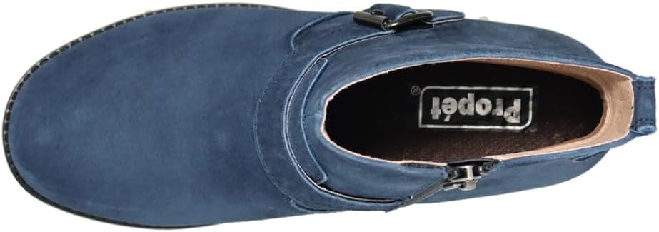 Wear boots that make you feel great inside and out. The Memphis bootie features soft suede with an adorable faux buckle accent strap and a size zip. Inside is the most cushioned insole Propet offers with our Durocloud ETPU foam that offers a high level of rebound in each step. The outsole is a supportive and durable TPU with a 2 inch heel for a classic dressy look.