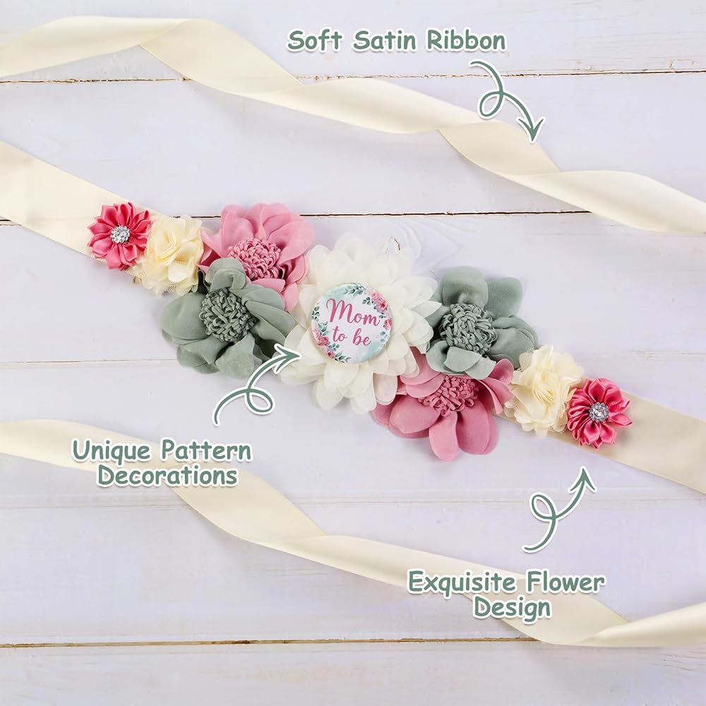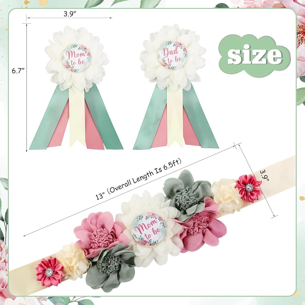 Wide Applications: This dusty pink flower maternity sash and corsage pins set is suitable as a gift for expectant parents. The mom and dad wear maternity sash at baby shower. The baby shower decorations will make a family memory together for everyone.