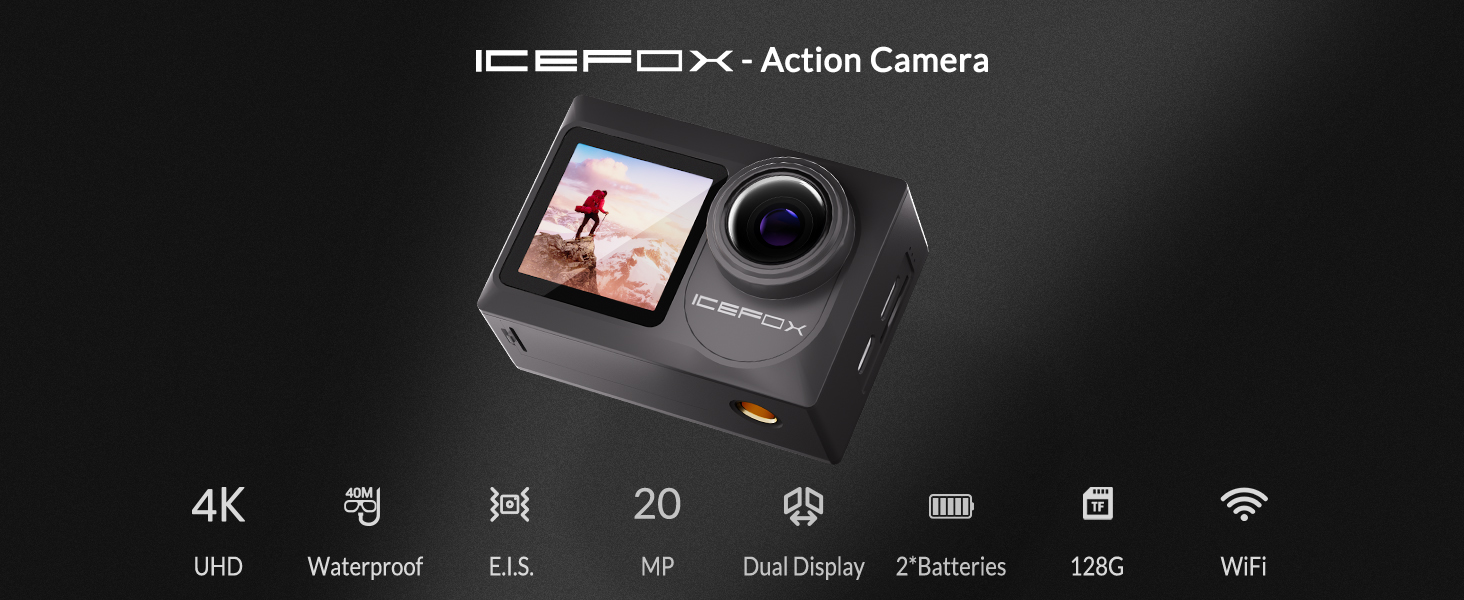 🔋【𝐖𝐢𝐫𝐞𝐥𝐞𝐬𝐬 𝐂𝐨𝐧𝐭𝐫𝐨𝐥 𝐚𝐧𝐝 𝟐 𝐑𝐞𝐜𝐡𝐚𝐫𝐠𝐞𝐚𝐛𝐥𝐞 𝐁𝐚𝐭𝐭𝐞𝐫𝐢𝐞𝐬】With a wrist 2.4G wireless remote control, control of the camera, framing recording or recording video are now ultra convenient - just press the button of the remote control. Full control of your action camera with the remote control. You can capture your world in a whole new way. You will no longer worry about the recording time for your action camera, Icefox 4K action camera comes with 2 rechargeable 1350 mAh batteries.