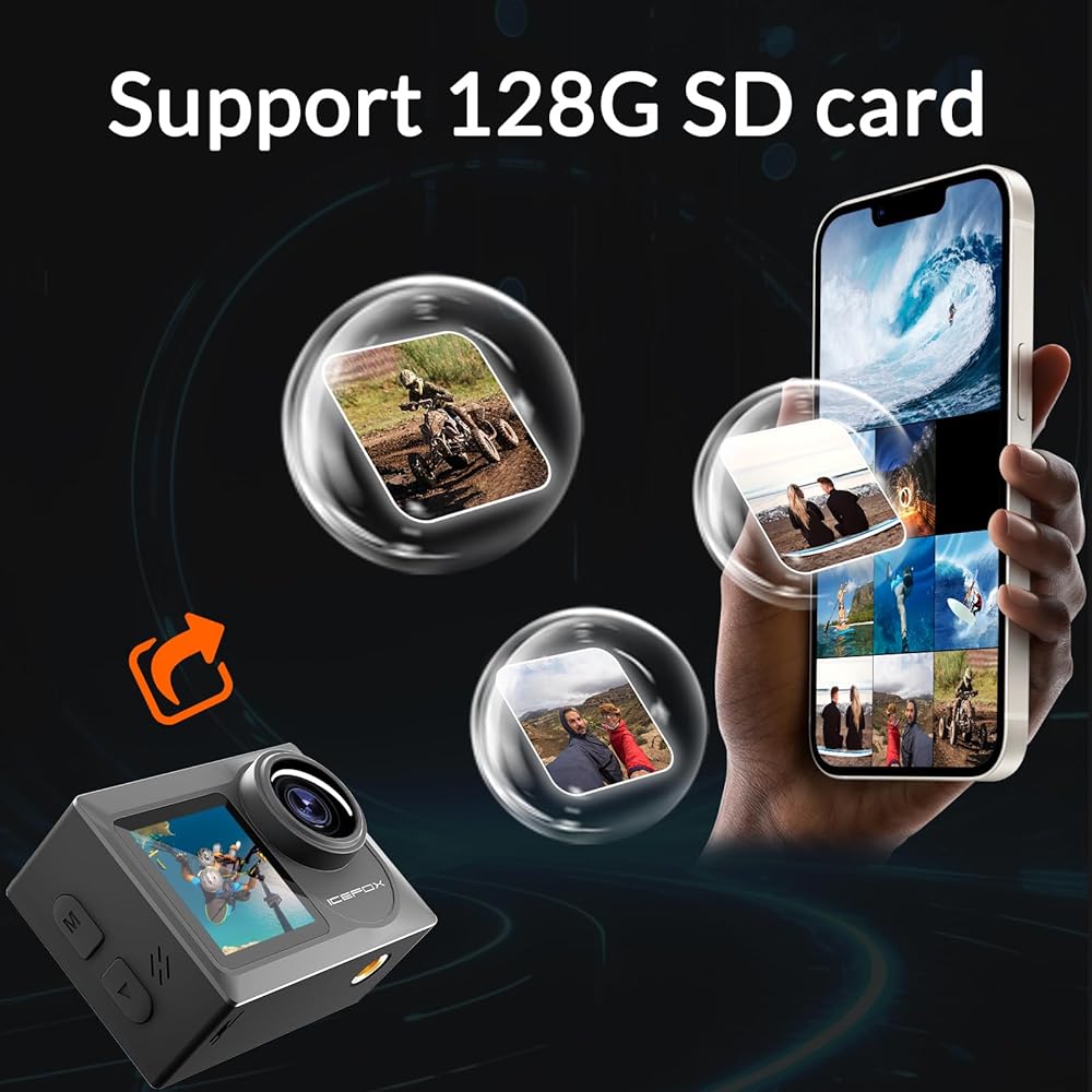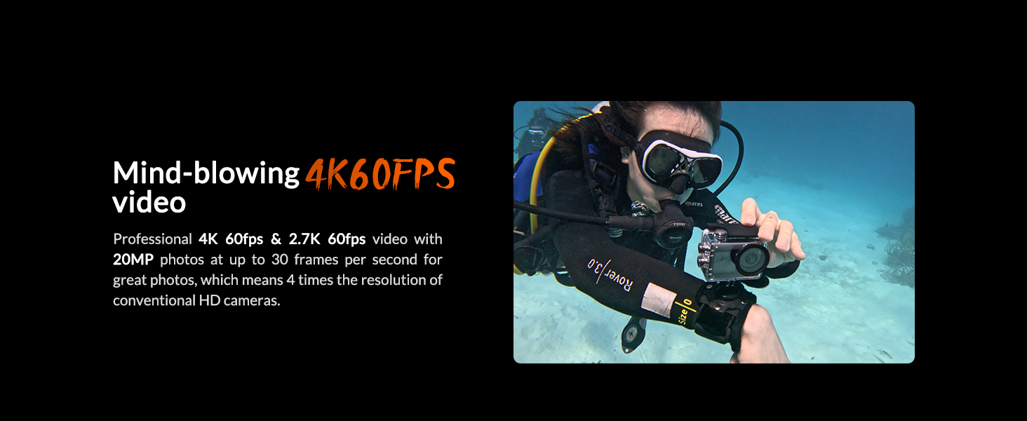 📹【𝟒𝐊 𝐔𝐥𝐭𝐫𝐚 𝐇𝐃 𝐀𝐜𝐭𝐢𝐨𝐧 𝐂𝐚𝐦𝐞𝐫𝐚】Professional 4K 60fps & 2.7K 60fps video with 20MP photos at up to 30 frames per second for great photos, which means 4 times the resolution of conventional HD cameras. Supports up to 128 GB micro SD card.