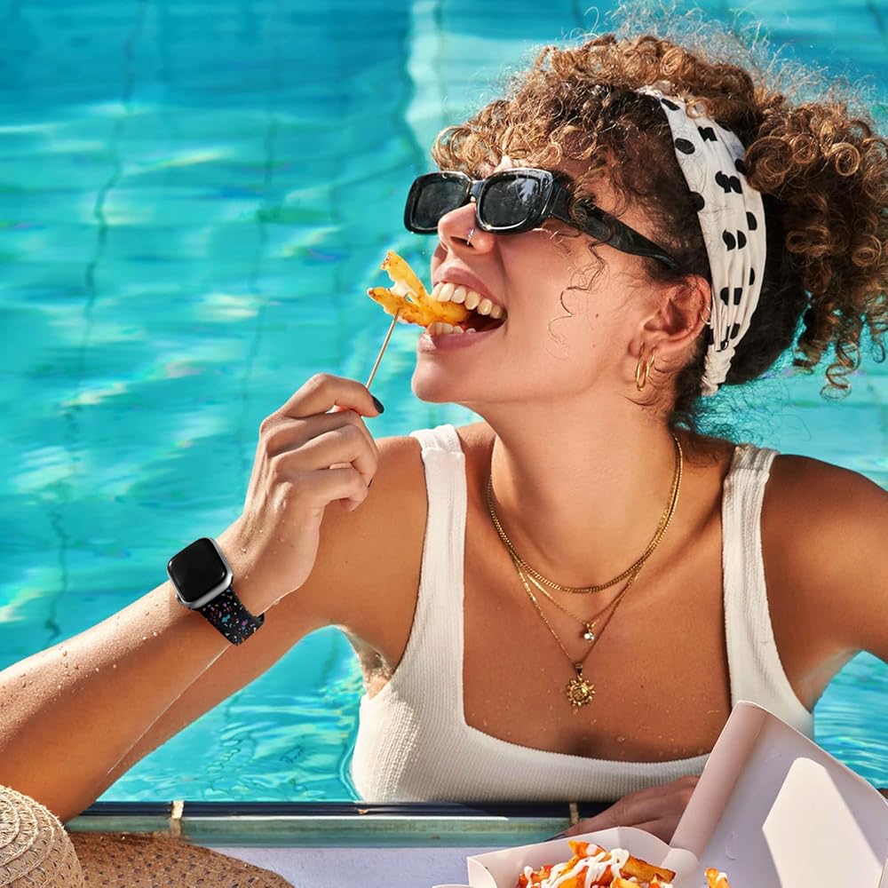 Multiple Color: The vibrant i watched wristband with colorful flecks add a burst of energy to any outfit. For a sporty look, the starlight, black or transparent options are perfect. Shopping or attending a party? Opt for eye-catching hot pink or light purple to stand out. Enjoy a relaxed vibe with cute pink, white or green hues. Get ready to receive countless compliments from friends, colleagues and loved ones! This watch strap makes a nice gift choice for birthdays, holidays and more.