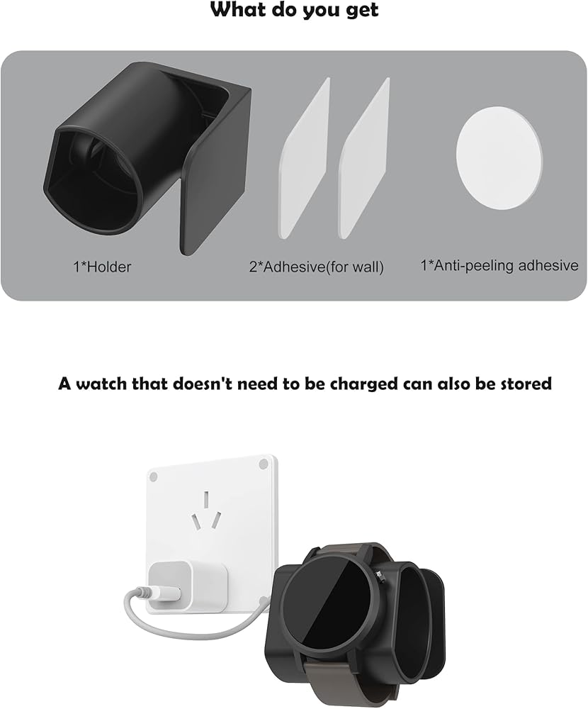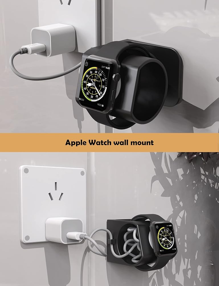 EASY INSTALLATION: The iwatch charging stand is fixed by adhesive and the charger fixed by anti-fall adhesive pad. Tips: You choose adhesive to install the holder, Please wait 24-48 hours after installation before storing items.