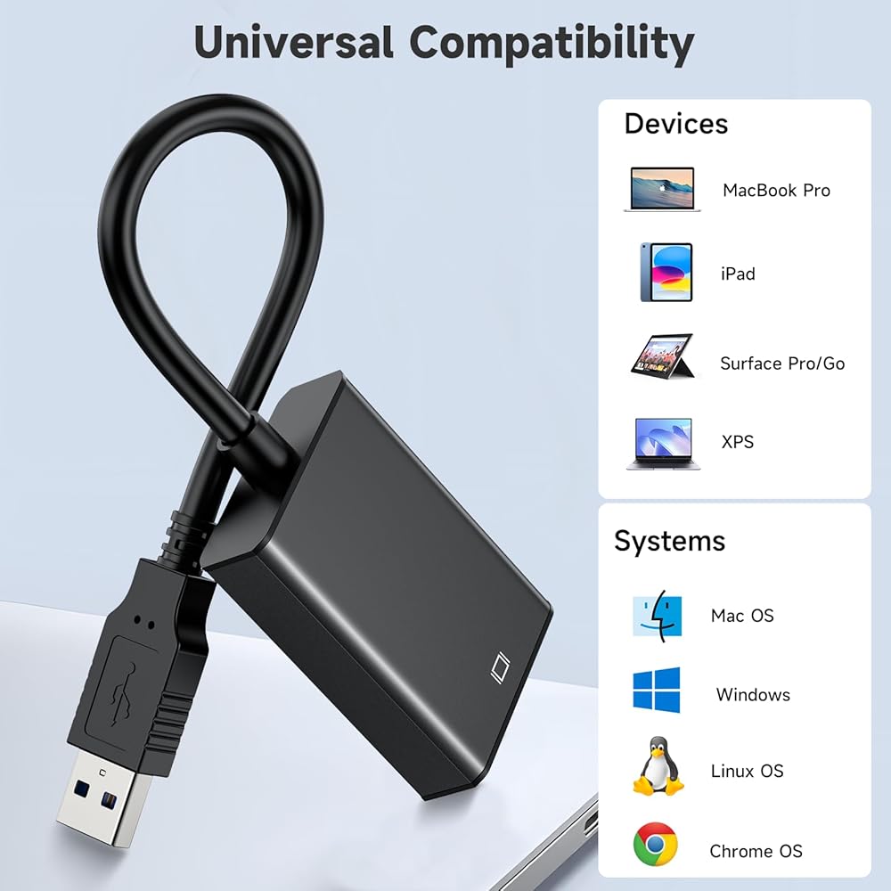 Oiiwak USB 3.0 to HDMI Adapter for Multiple Monitors Cable 1080P Compatible with Windows XP/7/8/9/10/11