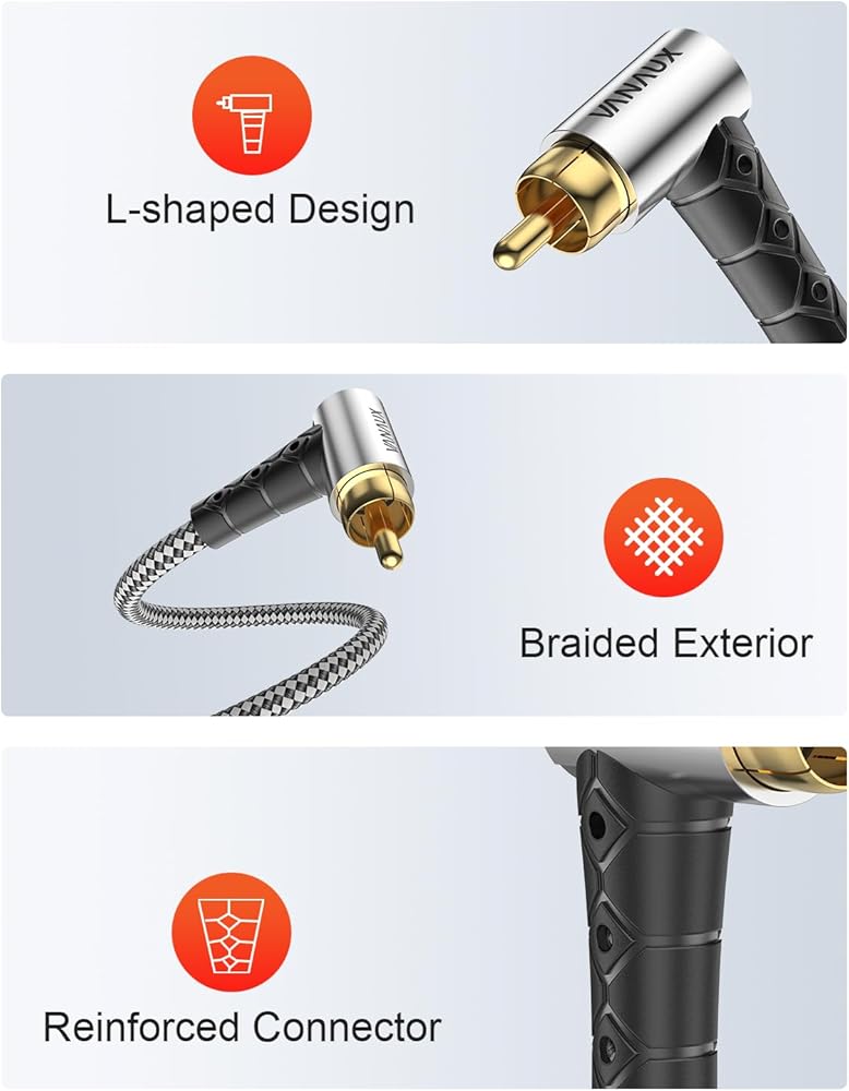 Enhanced Audio Quality: Experience powerful bass with our 90-degree subwoofer cable. Designed for optimal signal transmission, it delivers clear and deep bass without interference.
