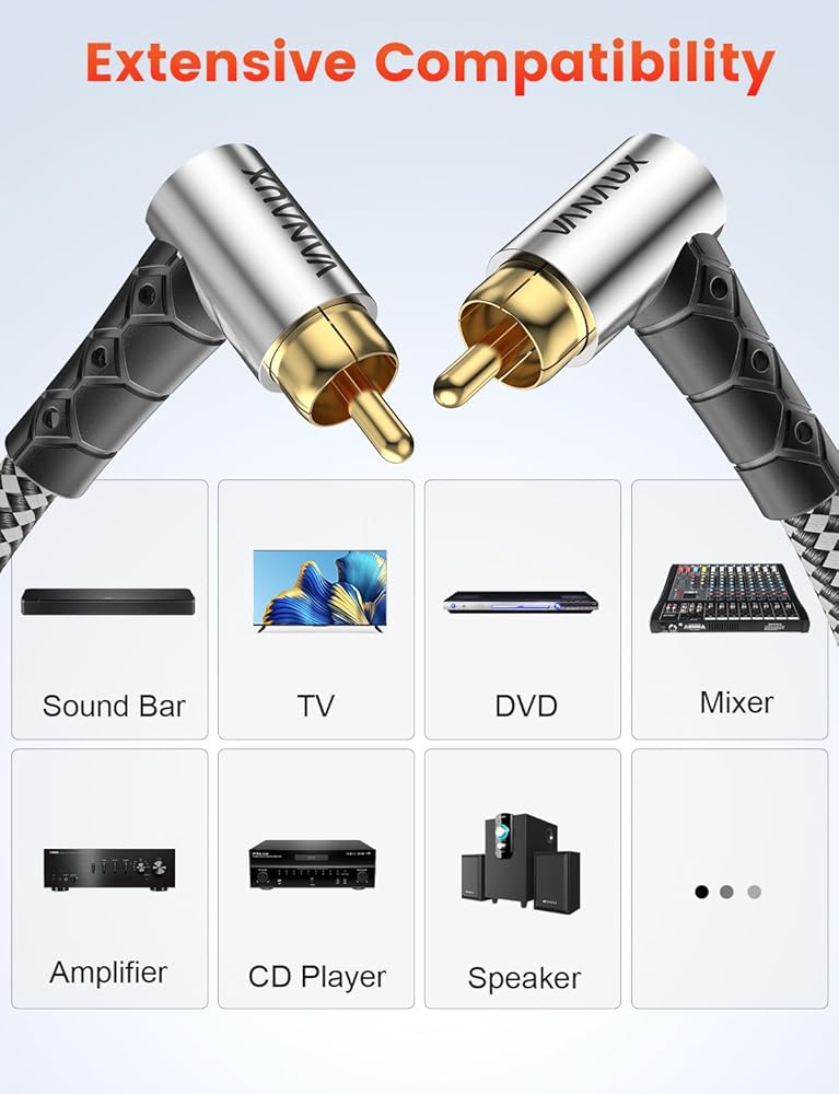 Wide Compatibility: Our Subwoofer cable compatible with subwoofers, amplifiers, receivers, and other audio devices. Perfect for home theaters, gaming setups, and sound systems, providing seamless audio connectivity.