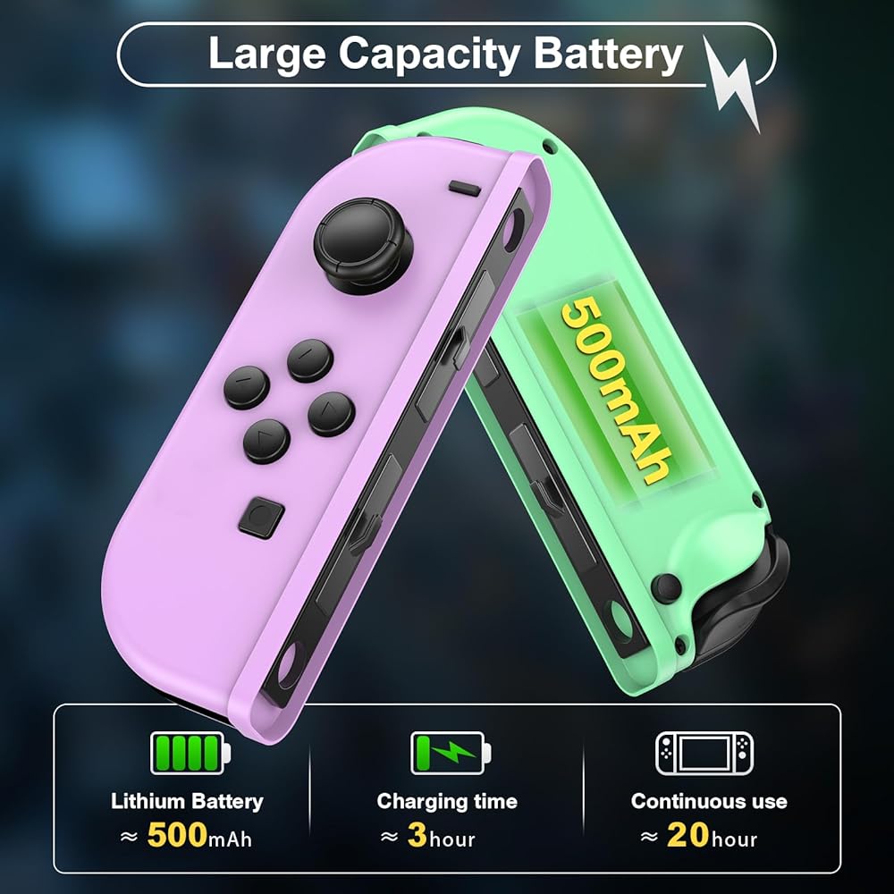【Large Capacity Battery】 Switch Controller has an excellent built-in 500mAh rechargeable battery. It charges fully in 3 hours and provides up to 18 hours of gameplay. You can enjoy long gaming sessions without worrying about battery life.