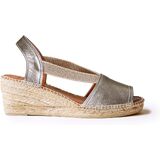 Toni Pons authentic espadrilles are 100% made in Spain using all-natural materials and featuring under-foot cushioning. This open-toe style features elastics that run down the front for functional fit and a flattering look.