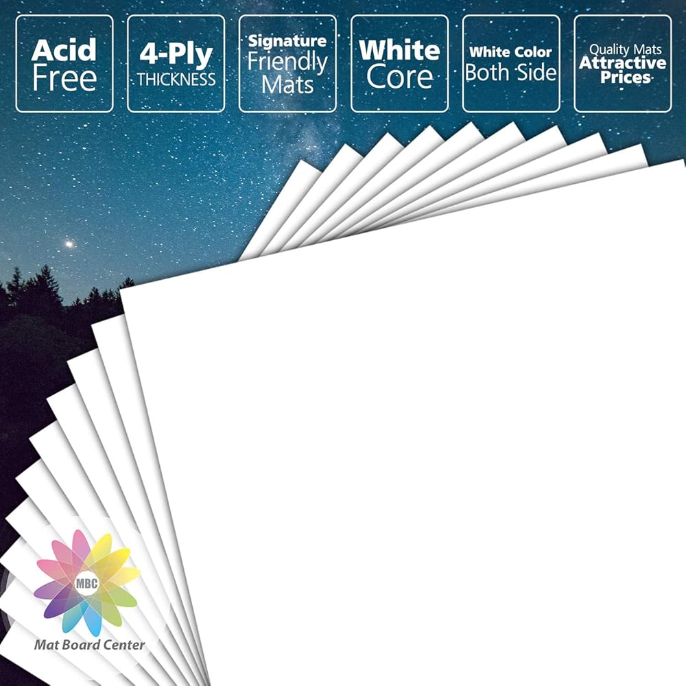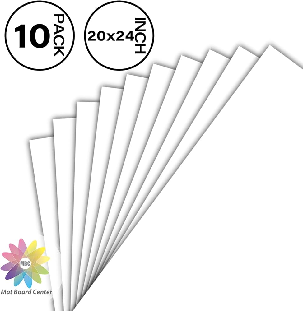 Mat Board Center, Pack of 10 20x24 White Uncut Mat Boards, Acid Free, 4-Ply Thickness, White Core, Great for Pictures, Photos, Framing Backing