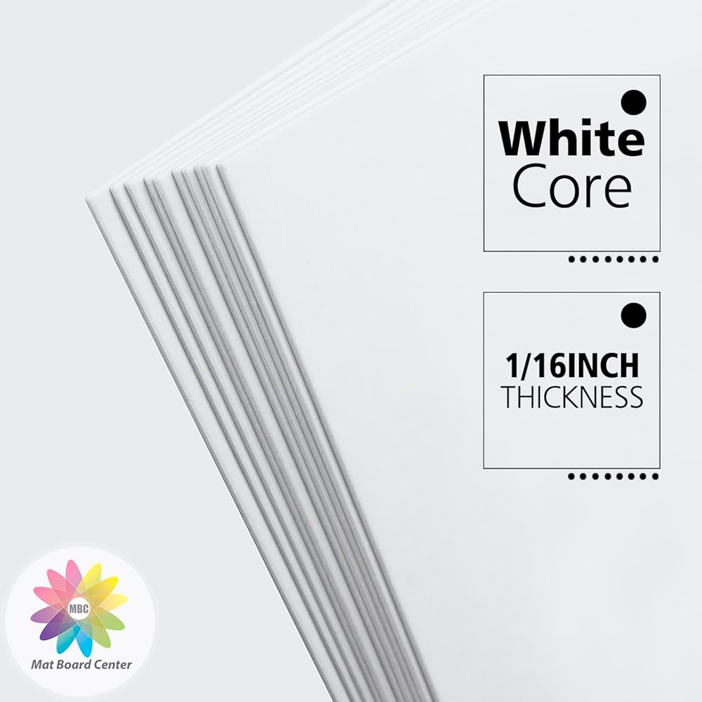 - White core, 4-ply thickness (about 1/16 inch - 1.4mm), uncut, acid free