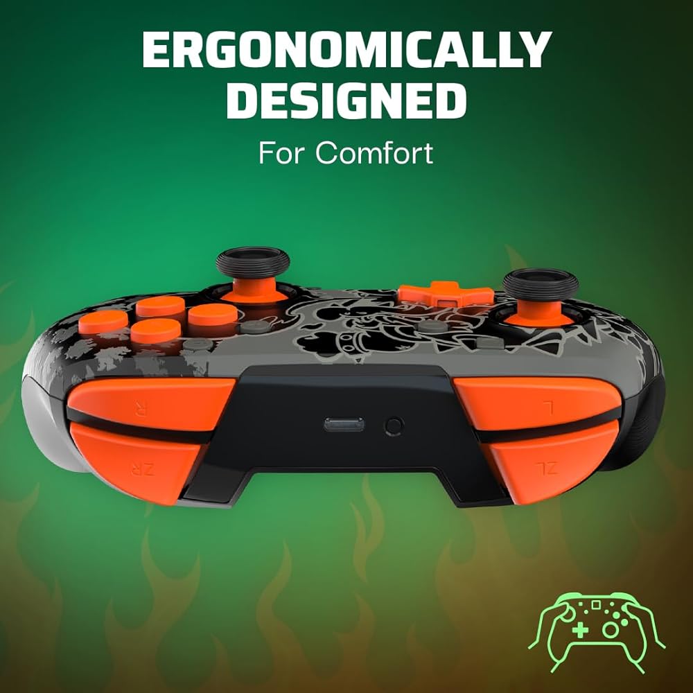 The Grand Prix Mario REMATCH GLOW Wireless Controller will power up your play on Mario Kart and more with a unique design that glows in the dark after exposure to light. With its 40-hour battery life, play all day knowing it can keep up with even the longest gaming sessions. Immerse yourself into the game with built-in motion controls. Get comfy on the couch and stay connected with the 30-foot, low latency wireless range. Program other button functions to the dual back buttons for faster actions in-game and a customized gaming experience. Give your gaming a glow up with the officially licensed REMATCH GLOW Wireless Controller for Nintendo Switch™.