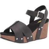 Slip into Volatile's Nekoma sandal crafted in vegan leather with butted center seam detailing and round metal stud accents for an instant elevation in your mood, and height too. Feet rest comfortably on the 3.25” wedge thanks to our signature ultra comfort EVA insole, and the opened-but-closed toe strap offers coverage and support while showing off your pedicure. Wears beautifully with dresses and wide leg pants alike.