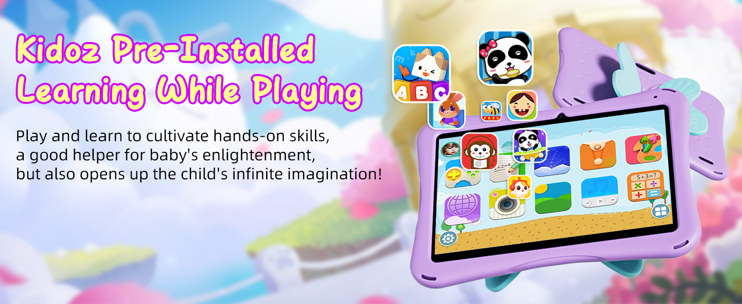 • 【Pre-installed kids apps】 Tablet for kids comes with a safe and funny Kidoz Kid's software. There are thousands of free games in kids store and all apps can be download for free. Kids can enjoy the math, language, music, painting in the game which is good for their talent.