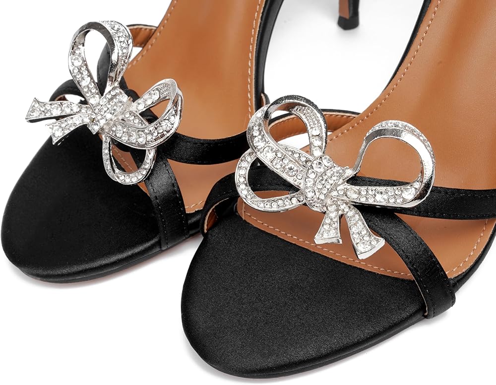 CONVENIENT:Our high-heeled sandals feature elastic straps for easy on and off.Rhinestone bow decoration,cute and elegant.