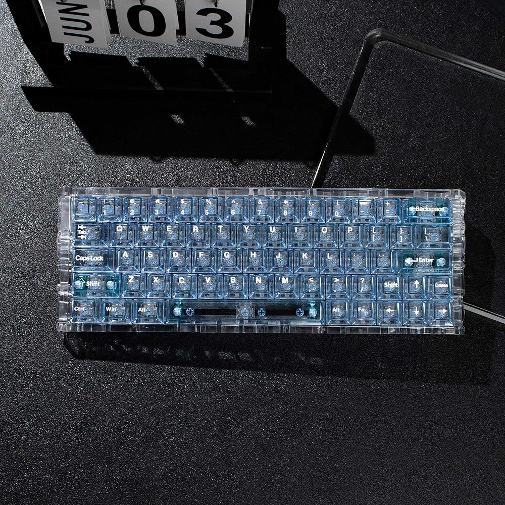 CLEAR KEYBOARD KEYCAPS: If you've been searching for a transparent keyboard with fun custom colors, this set of crystal clear keycaps will be your best office companion.