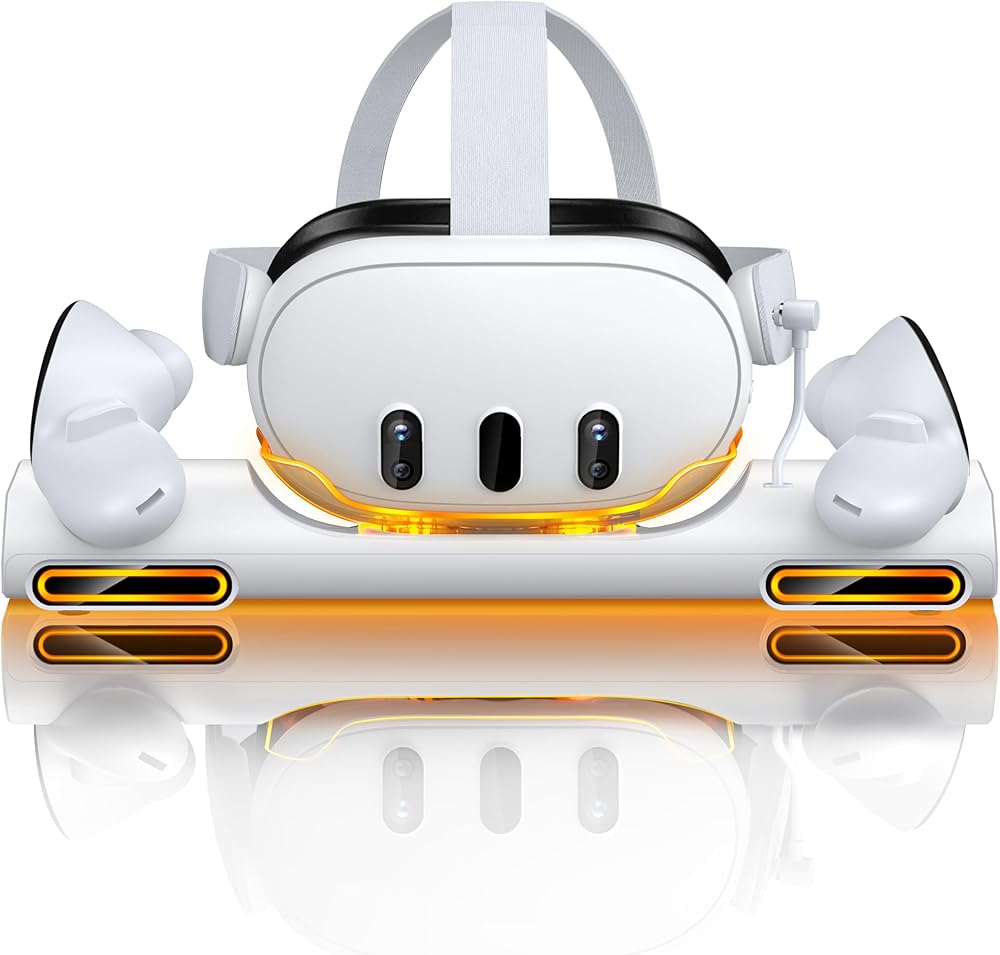 【What You Get】Package includes: 1 x charging station for Oculus 3/2, 4 x Rechargeable Batteries, 1 x USB A to USB C Cable, 1 x 15W charger adapter cable, 1 x User Manual. (Note:The 15W USB-C Charging adapter is included. Controllers don't wireless charge, the stand only hold touch controllers )