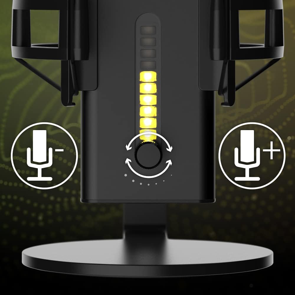 CONTROL VOLUME LEVEL: The integrated LED gain indicator visually lets you know if your voice is too loud so you can react immediately. Need a moment to cough or grab a snack? One simple tap on the top silences the microphone instantly.