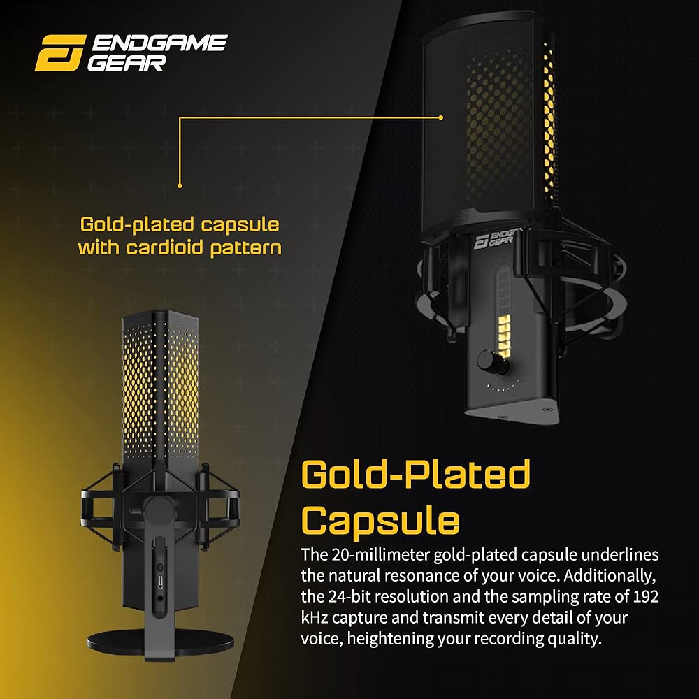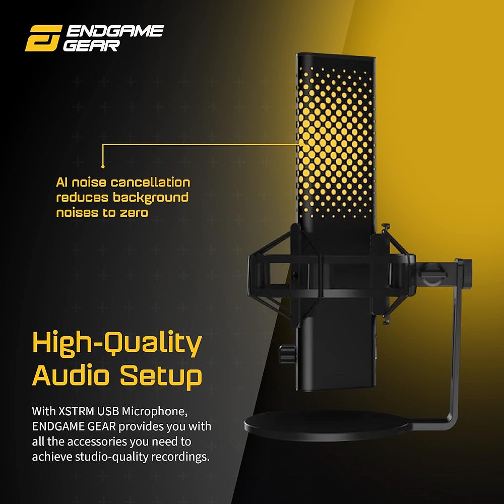 FILTER BACKGROUND NOISE: The ENDGAME GEAR XSTRM USB microphone's cardioid pattern focuses on sounds from the front. Integrated AI noise cancellation removes annoying background sounds. The shock mount suspends the mic, allowing independent movement and absorbing unwanted vibrations.