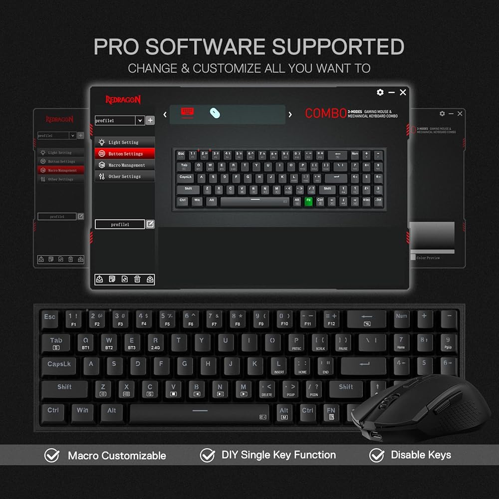 Wireless for Boundless Productivity - Experience the freedom of a clutter-free workspace with the Redragon wireless keyboard and mouse combo. An Advanced common 2.4GHz dongle shared provides precise, non-interfering and lag-free data transmission.