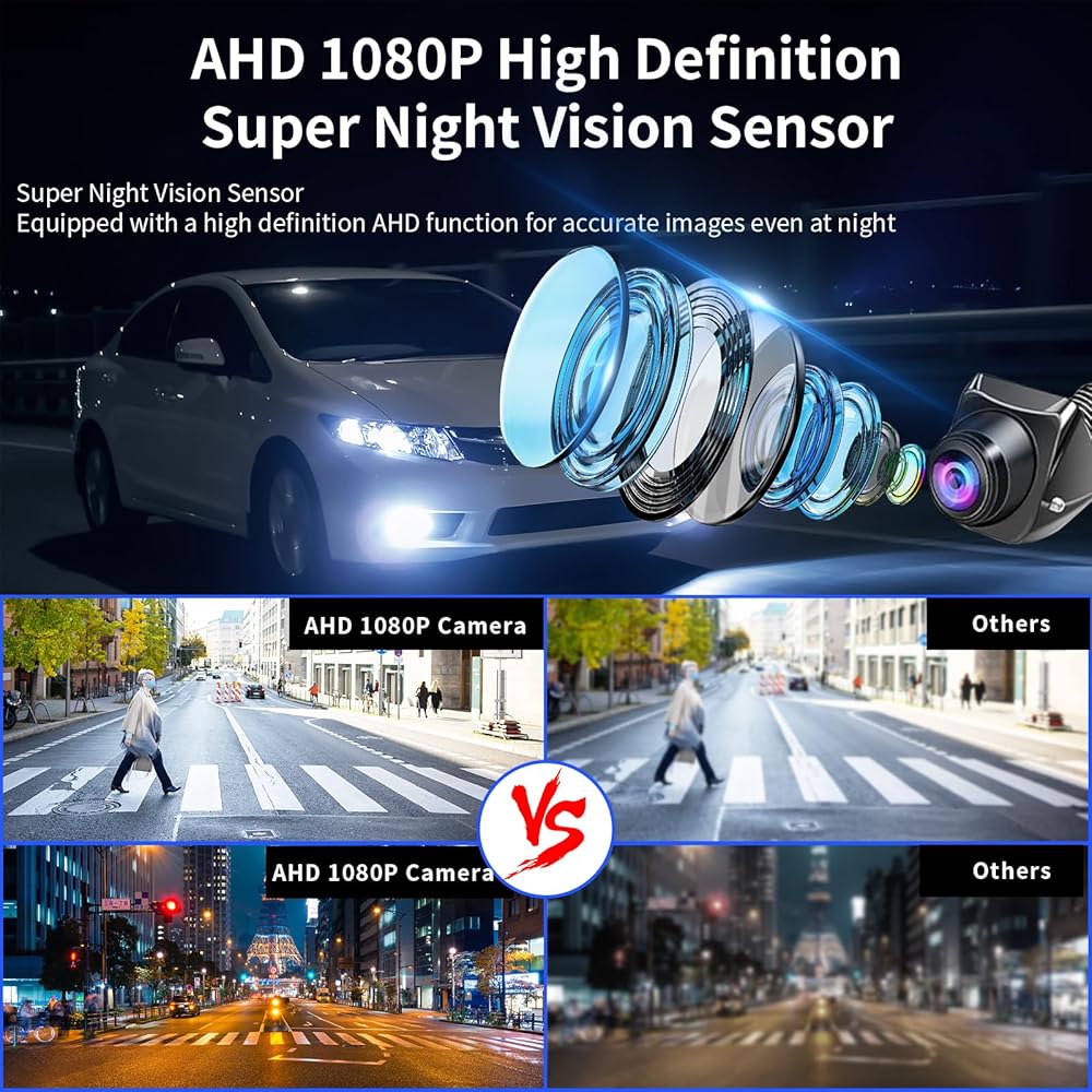 B-Qtech Car Backup Camera Monitor System Rear View Reverse Camera Waterproof Night Vision DIY Guide Lines LCD 1080P Display for Cars Truck Off-Road SUV Van Jeep UTV