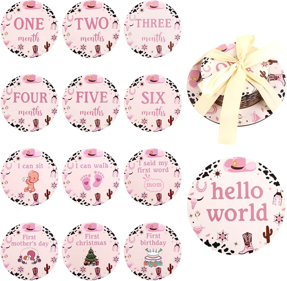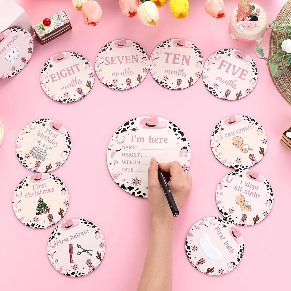 Package Content: You will get 13pcs cowgirl wooden monthly photo cards, including newborn to 12 months photo marker discs, double sided design.