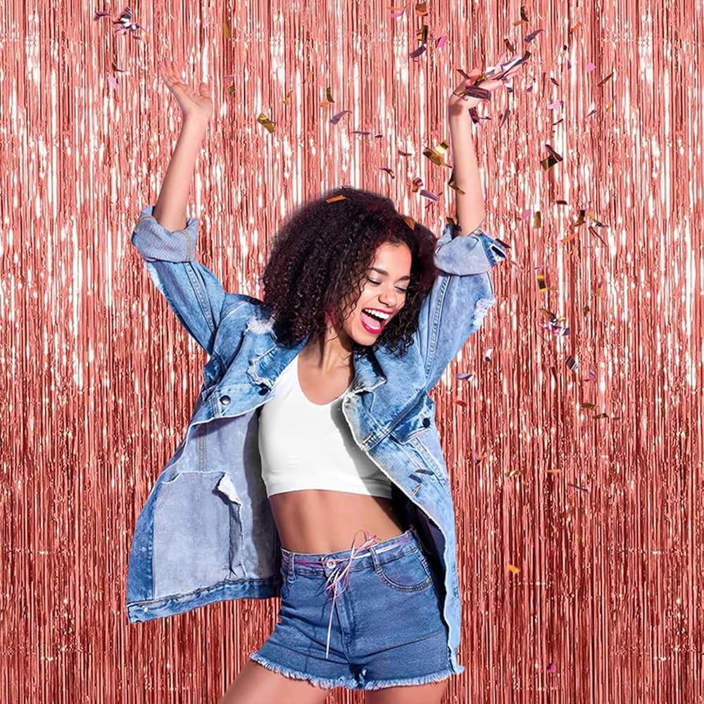 【Premium Material】This black foil curtain backdrop is made of tinsel, non-toxic, odorless, and non-fading. Unfold it and then enjoy your glittering party.