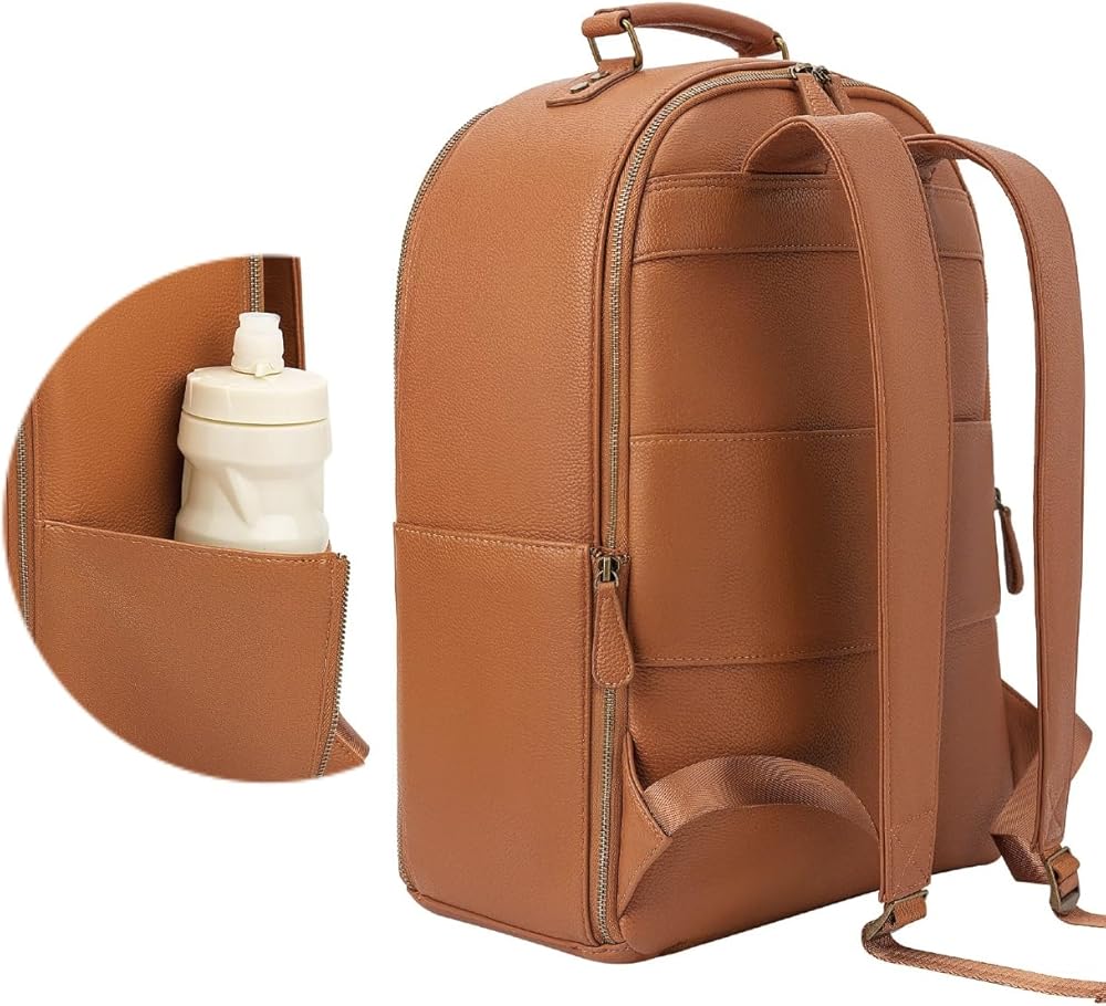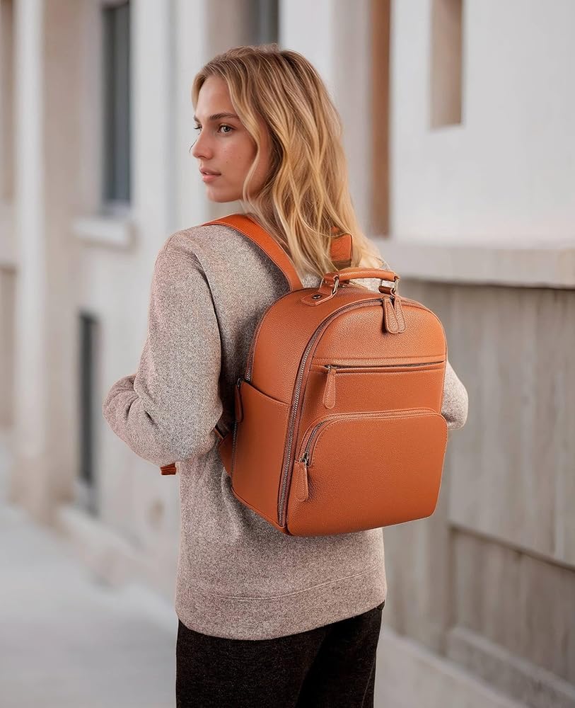 Minimalist Aesthetic with Functional Grace: Our backpack is adorned with bronze-colored hardware accessories that harmonize with the color of the zippers, striking a balance between durability and design. The raindrop-shaped pullers are not only a visual delight but also ensure a comfortable grip for ease of access. With SBS zippers, rest assured that your valuables are secure under the vigilant guard of quality craftsmanship.