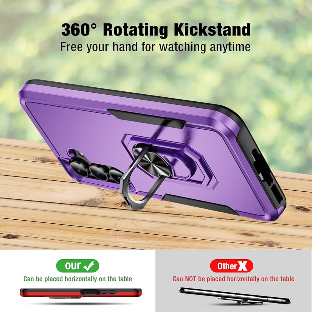 👍【360° Rotating Kickstand Design】 The Samsung Galaxy A35 5G case features a built-in metal kickstand that can be easily rotated 360°, freeing your hands and providing convenience for watching videos. Additionally, the case includes a metal magnetic plate for attachment to magnetic car mounts.