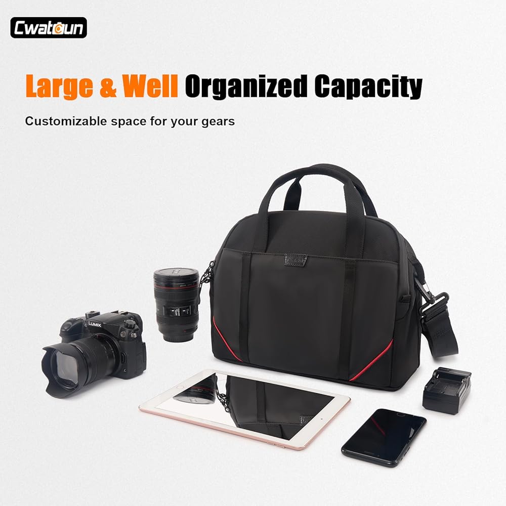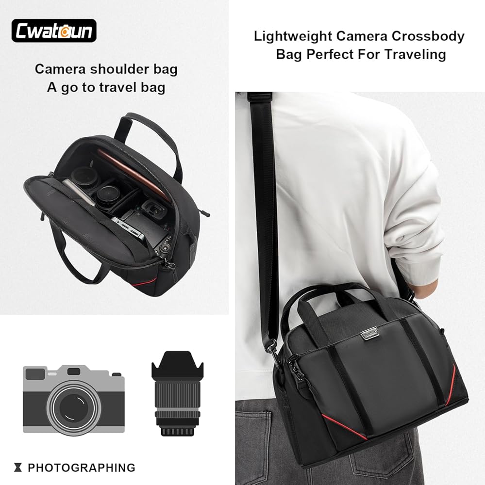 Cwatcun Camera Bag Crossbody, DSLR/SLR/Mirrorless Camera Bags for Photographers with Tripod Holder, Camera Case Compatible with Canon/Nikon/Sony - Small