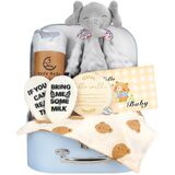 Baby Boy Gift Basket Set, Unique Baby Gift Basket Set, New Baby Boy Gift Basket, New Baby Gift Basket Set with Baby Blanket, Baby Rattle, Bunny, Keepsake Milestone, Elephant Toy, Baby Socks