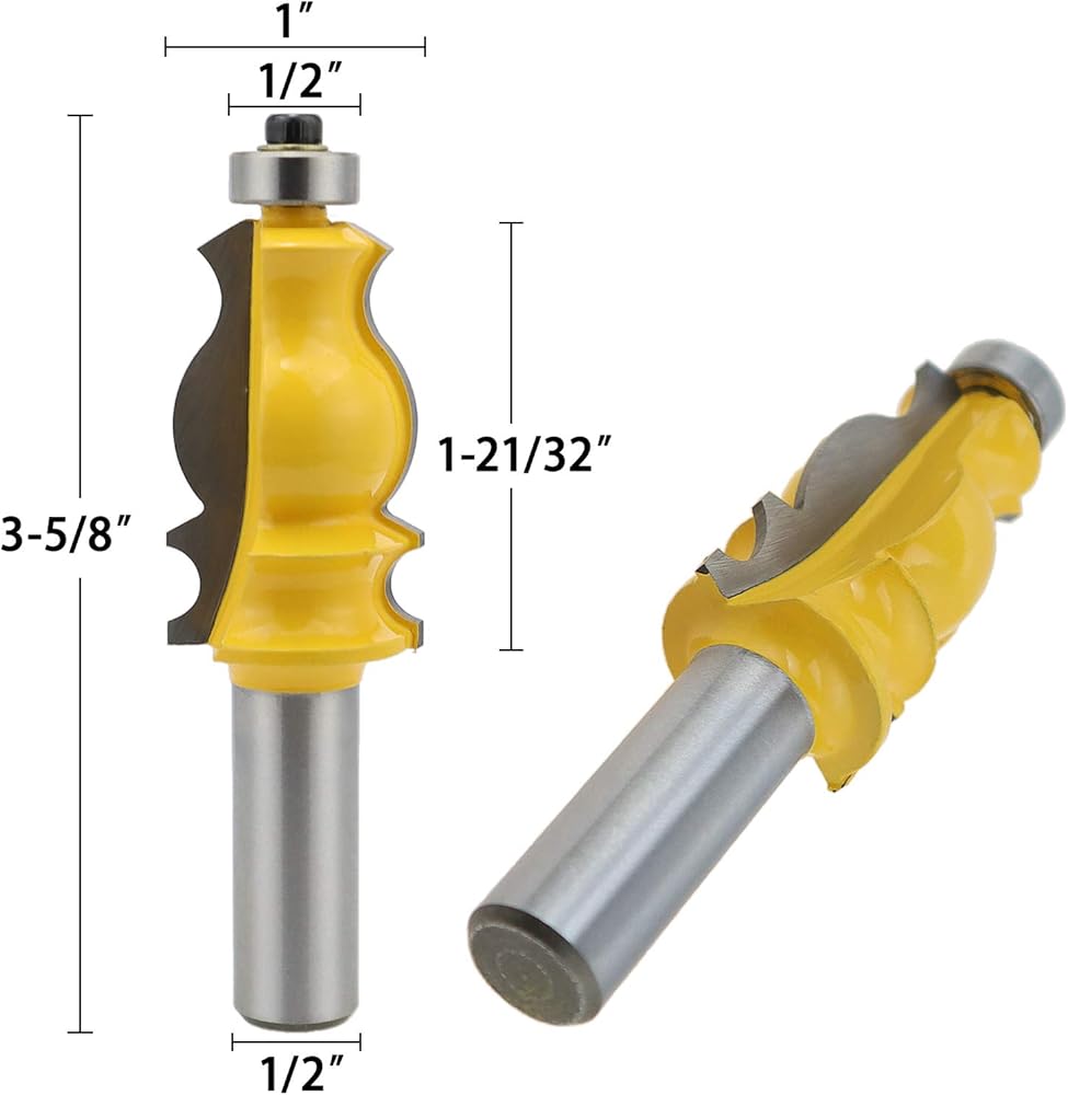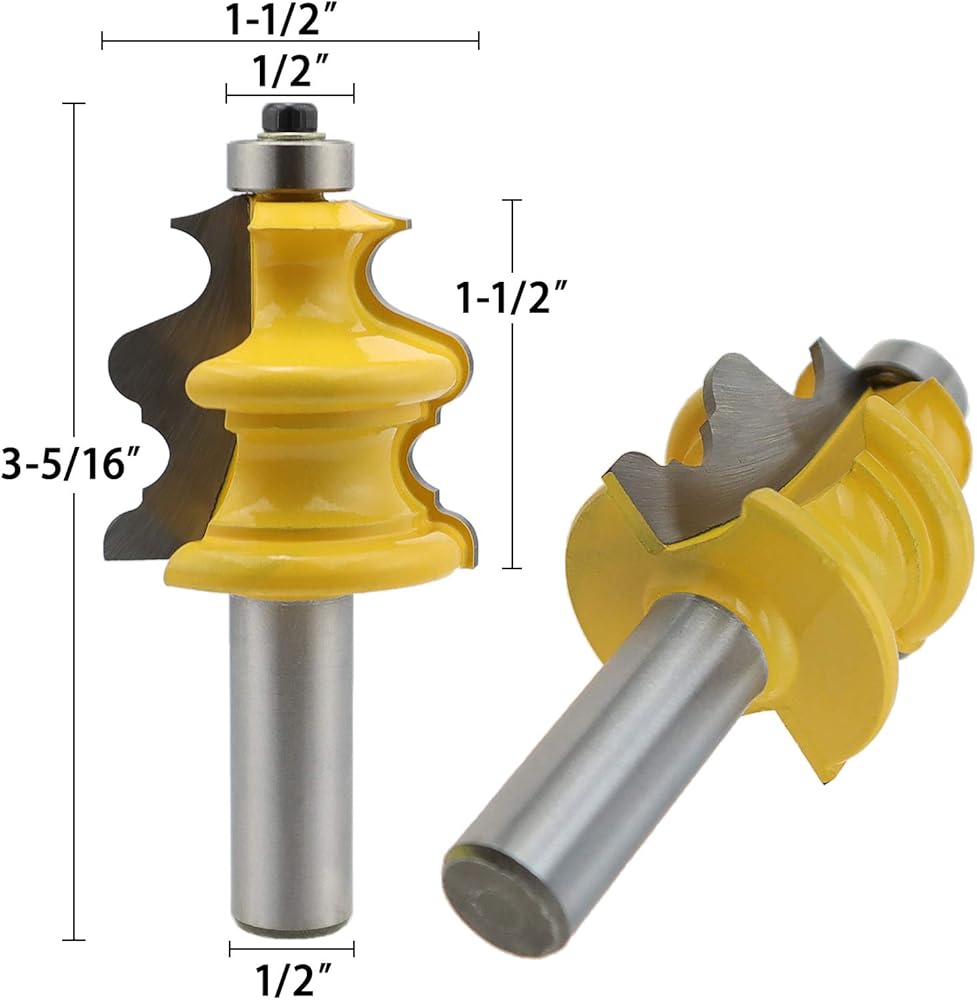 Architectural Molding Router Bit Set 1/2-Inch Shank Wood Milling Router Corner Rounding Edge-Forming Round Over Beading Router Bit Set Woodworking Miter Carbide CNC Cutting Tool for Doors, Tables-5Pcs