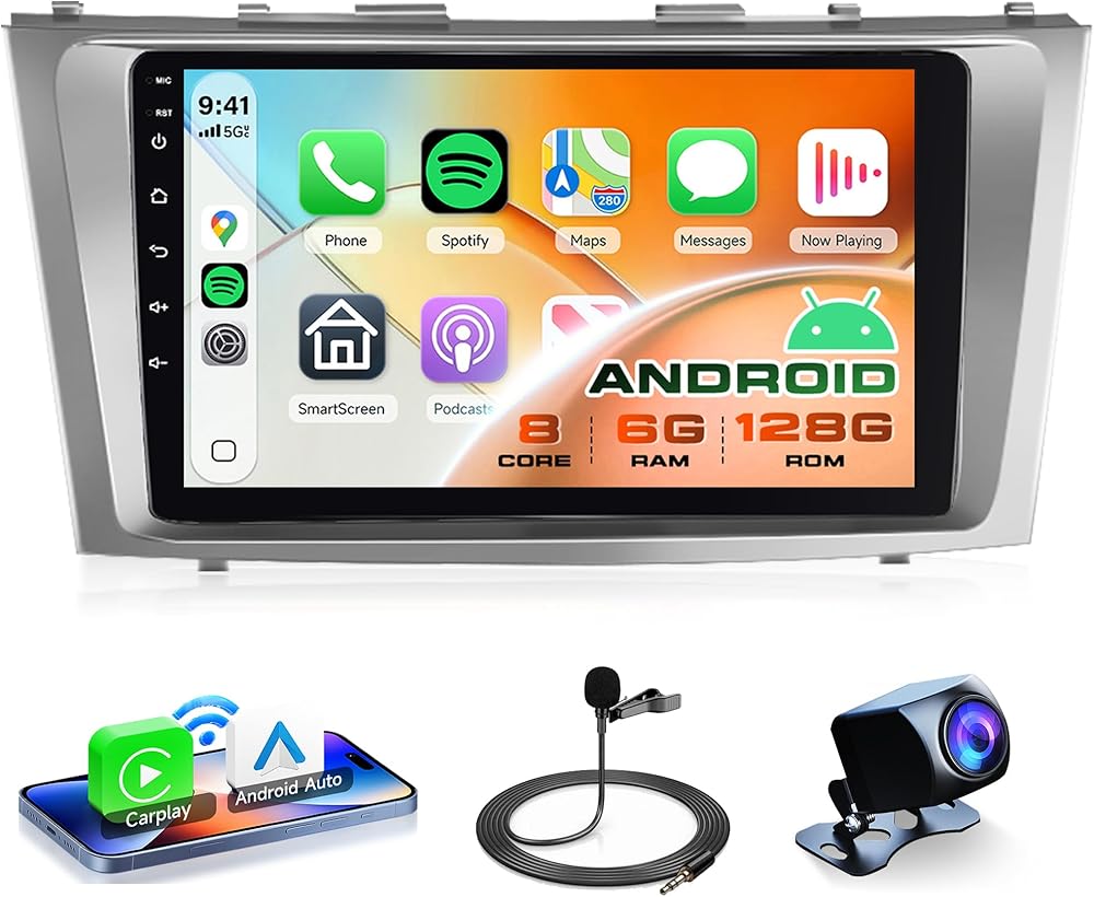 🚘8 Core Car Radio for Toyota Camry: Android car stereo carplay Compatible Vehicles: for Toyota Camry 2006-2011. Carplay stereo equipped with android system, 8 Core CPU, Memory: 6GB (RAM)+128GB (ROM) with powerful and stable processing and storage, with no lag or delay. 9 inch IPS touch screen: Enjoy a large and clear display with responsive touch control, which allows you to operate the device easily and comfortably.