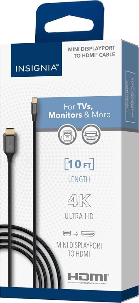 Enjoy media in up to 4K resolution at 30hz with help from this Insignia cable that lets you connect your computer's mini DisplayPort interface to an HDMI type-A input. Various length permits flexible placement.