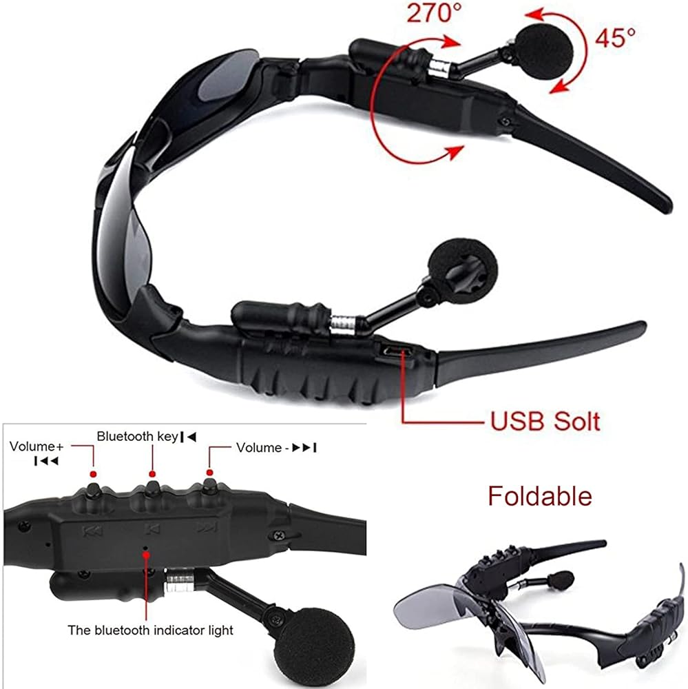 ➤Foldable Sunglasses: The headphones of glasses is adjustable and can be freely telescoped, 270° foldable design deliver ultimate comfort while on the move.