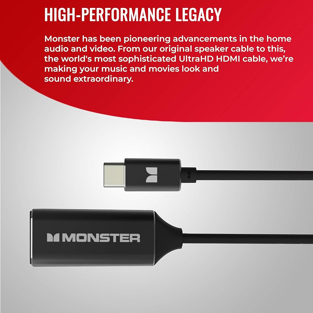 COMPATIBILITY: Multiple viewing options are available to you since this Monster cable or adapter can connect laptops or smartphones with USB Type-C connections that support video to an HDMI display
