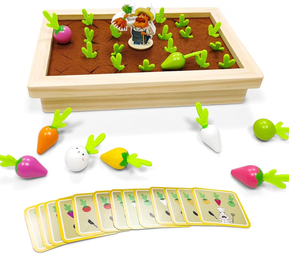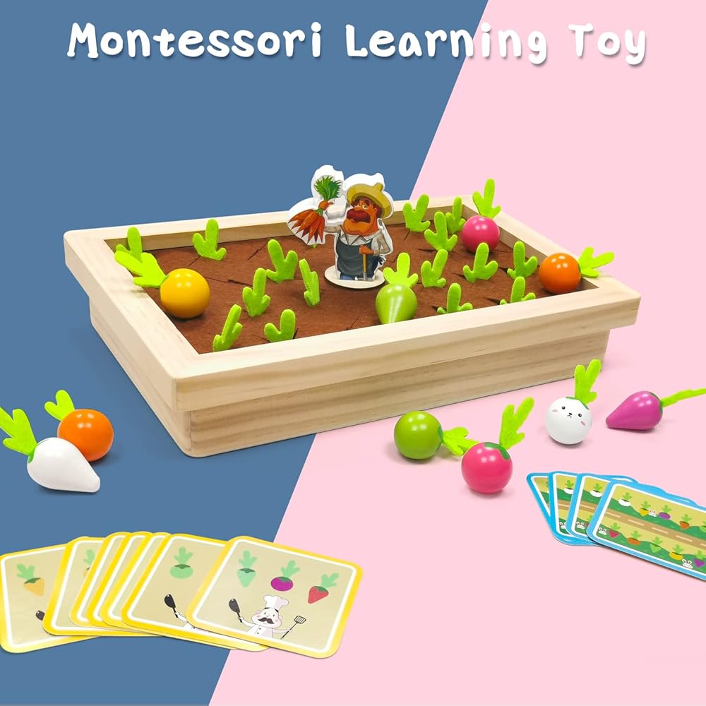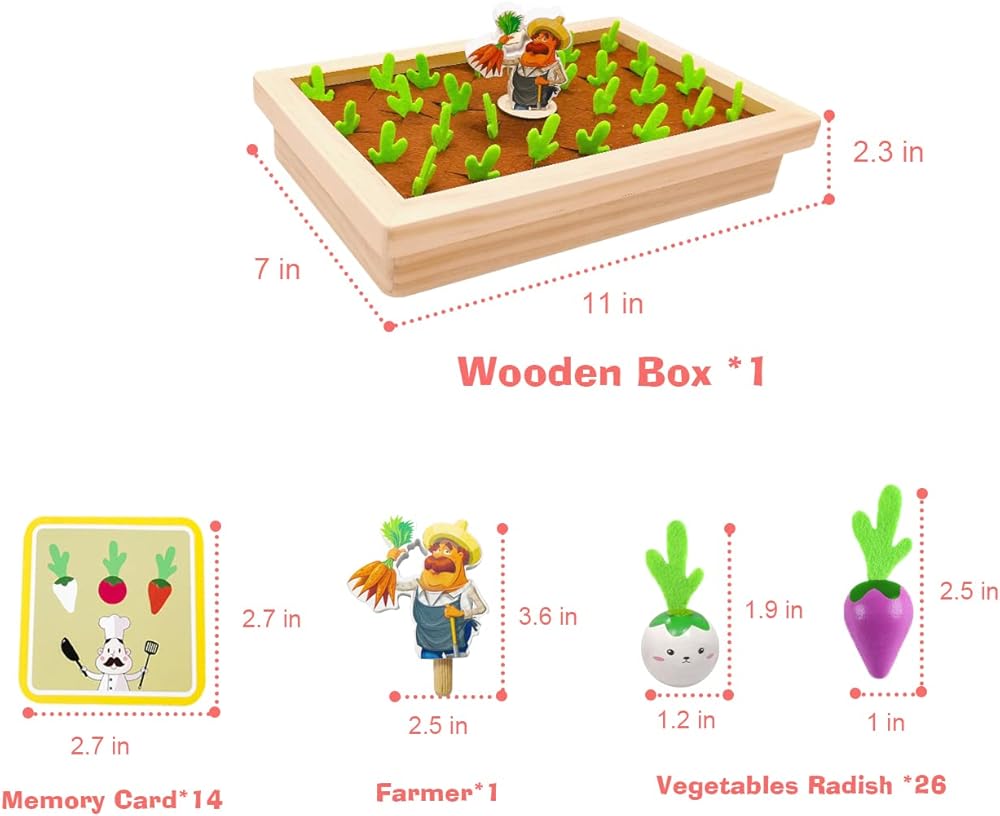 Fun planting game: A wooden farm land model with 26 hidden planting holes. After planting all the carrots, only the leaves are exposed on the ground, which perfectly imitates the carrot planting farm and brings children a realistic gaming experience!